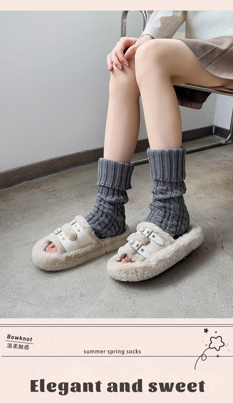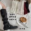 Conjunto de pernas para mulheres meias de pilha outono e inverno tubo de cor sólida turn-up torção y2k branco malha meias quentes fábrica atacado