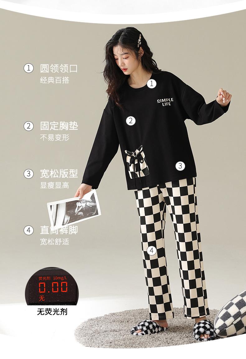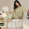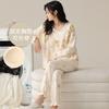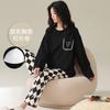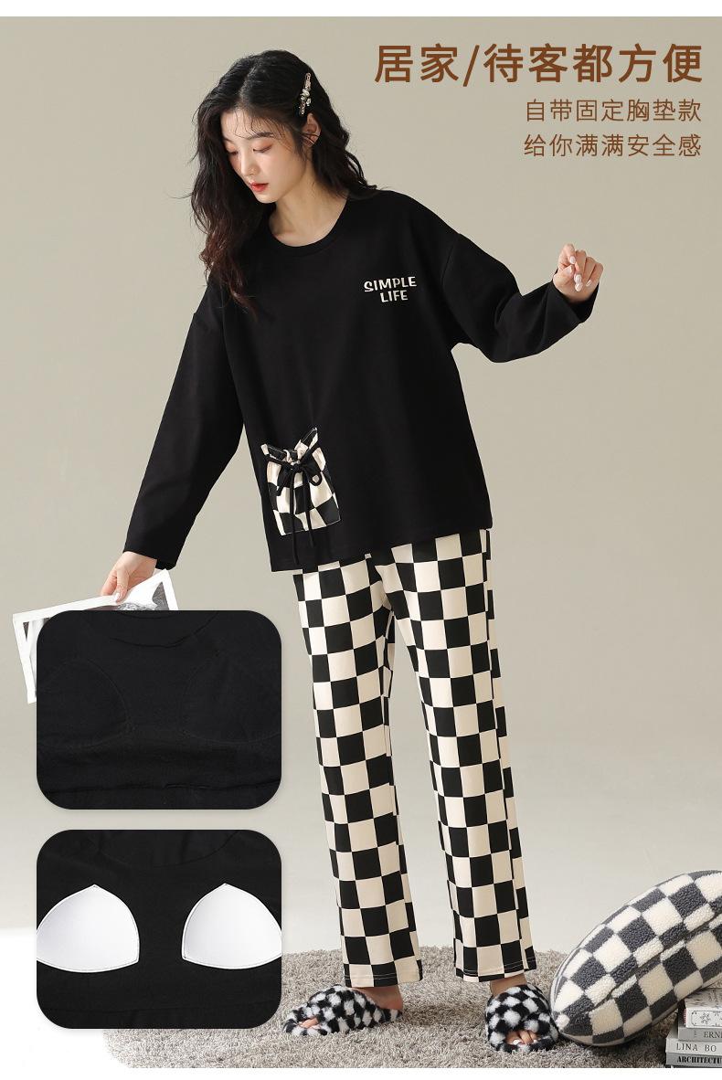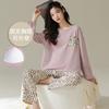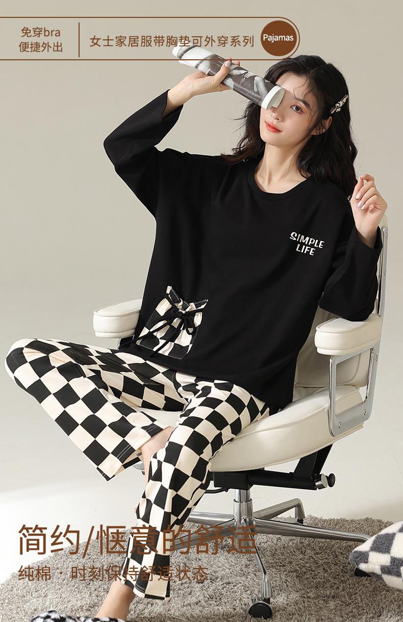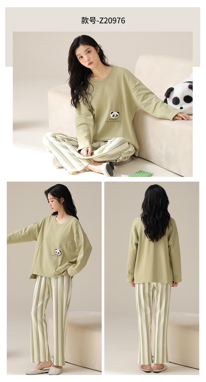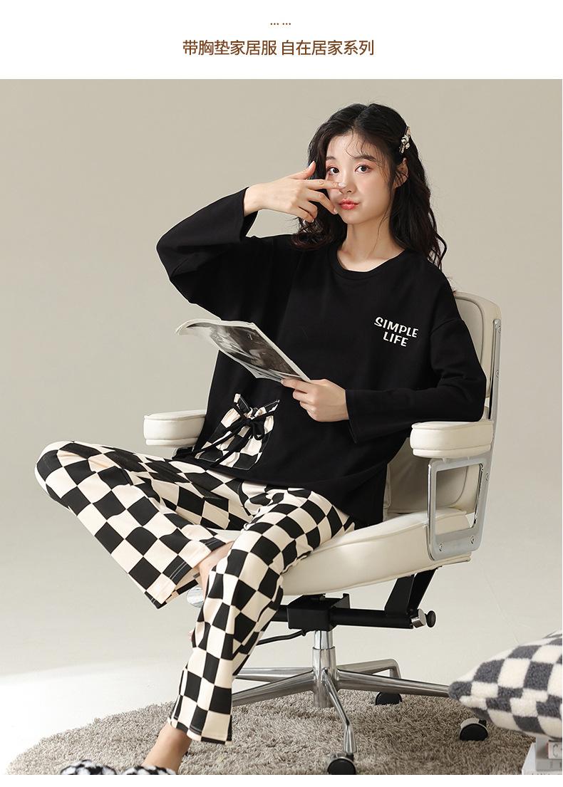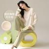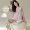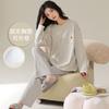 Em estoque Faixa de cabelo Almofada no peito Pijamas Femininos Primavera e Outono Algodão Gola Redonda Pulôver Desenho Animado Bonito Manga Longa Roupas de Casa terno