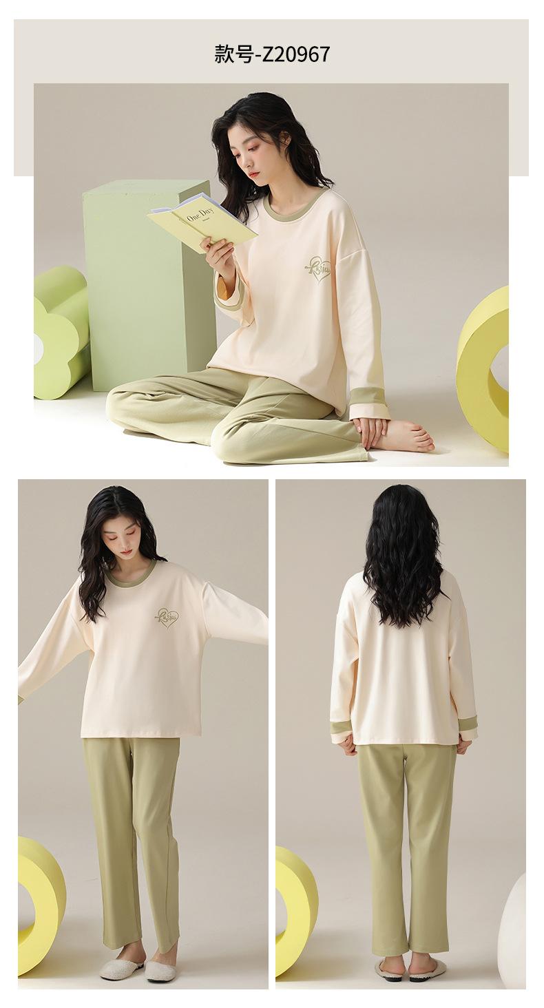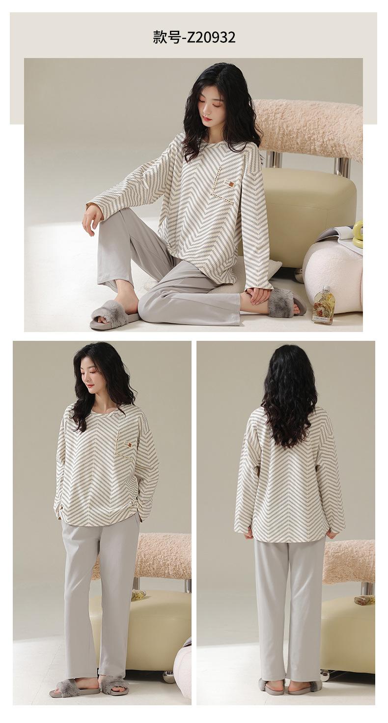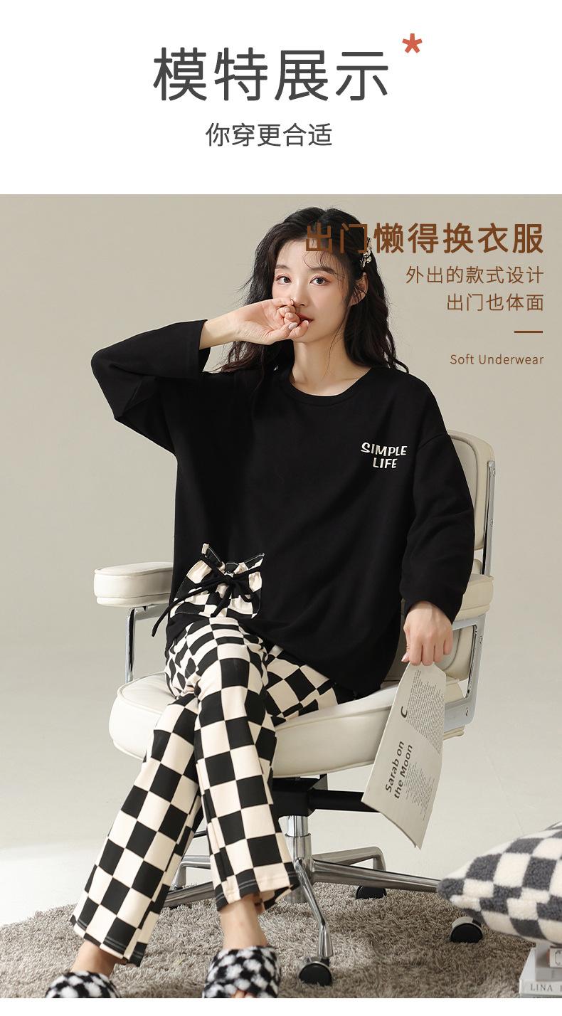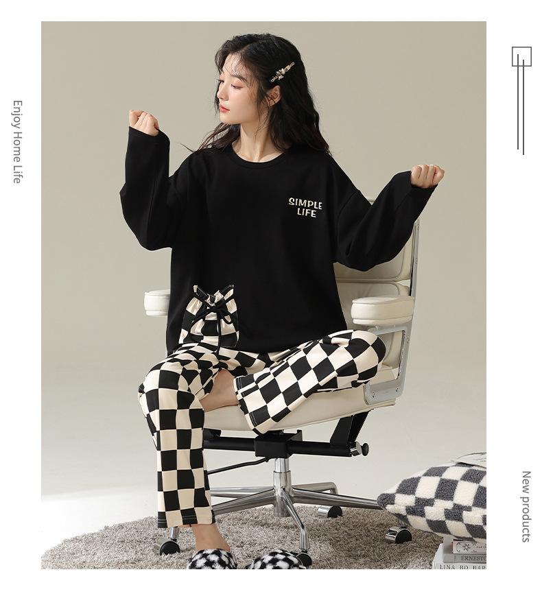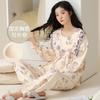 Em estoque Faixa de cabelo Almofada no peito Pijamas Femininos Primavera e Outono Algodão Gola Redonda Pulôver Desenho Animado Bonito Manga Longa Roupas de Casa terno