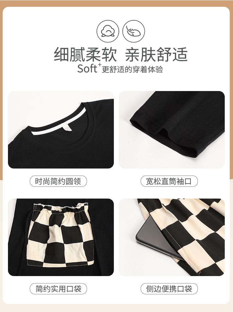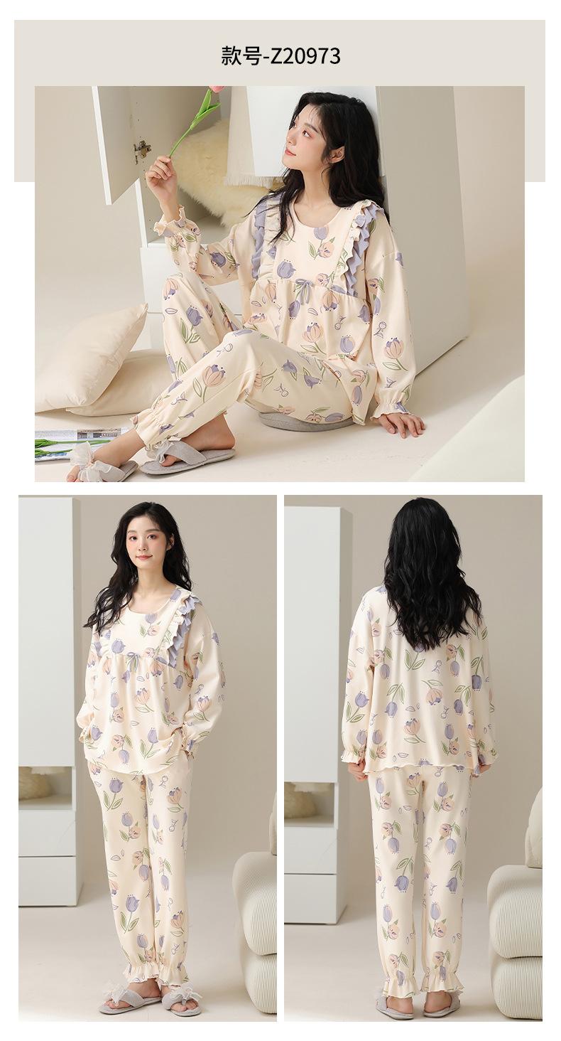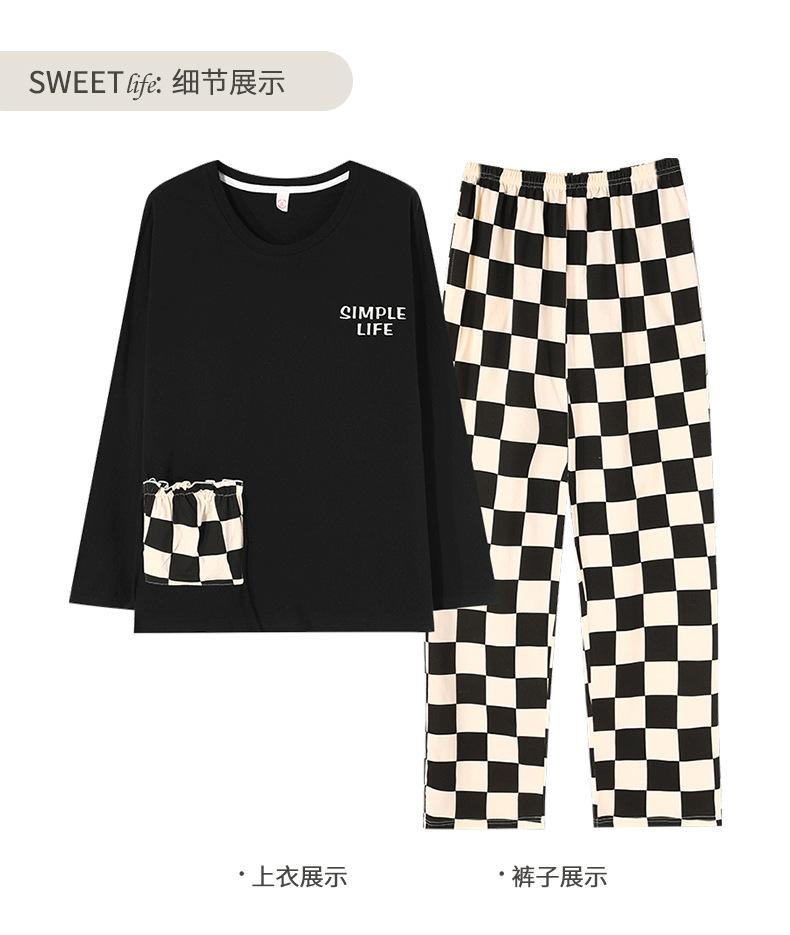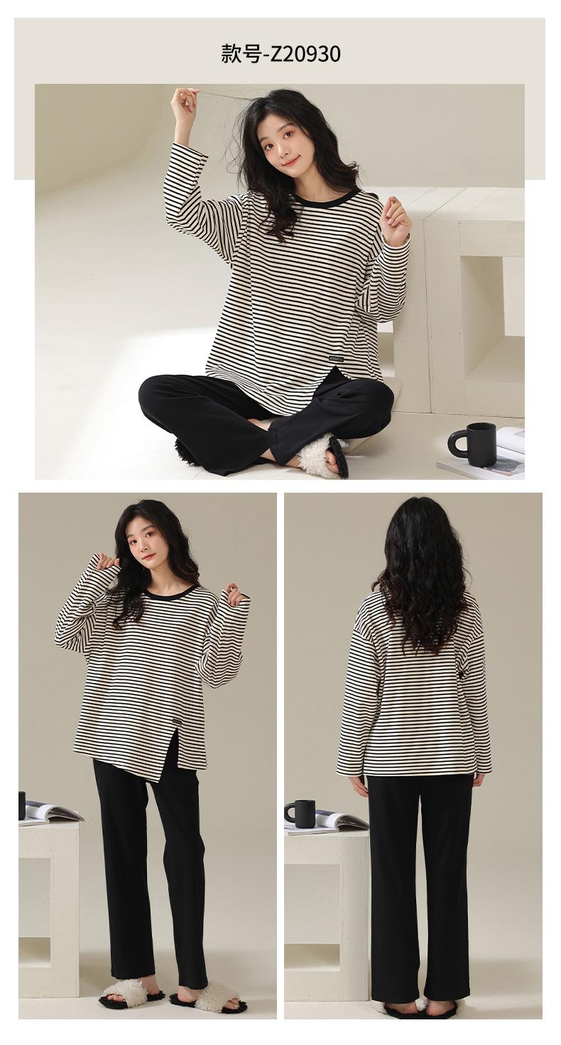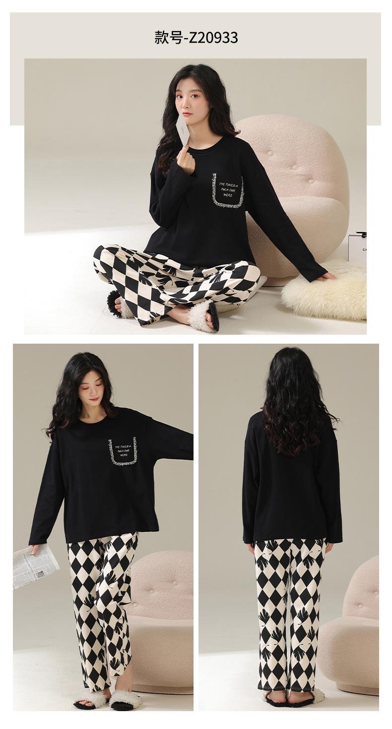 Em estoque Faixa de cabelo Almofada no peito Pijamas Femininos Primavera e Outono Algodão Gola Redonda Pulôver Desenho Animado Bonito Manga Longa Roupas de Casa terno
