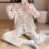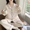 Pijama Feminino Algodão Puro Primavera e Outono Camisa Xadrez Lapela High-end Vestindo Cardigã Exterior de Manga Comprida Roupas de Casa terno Mulheres