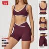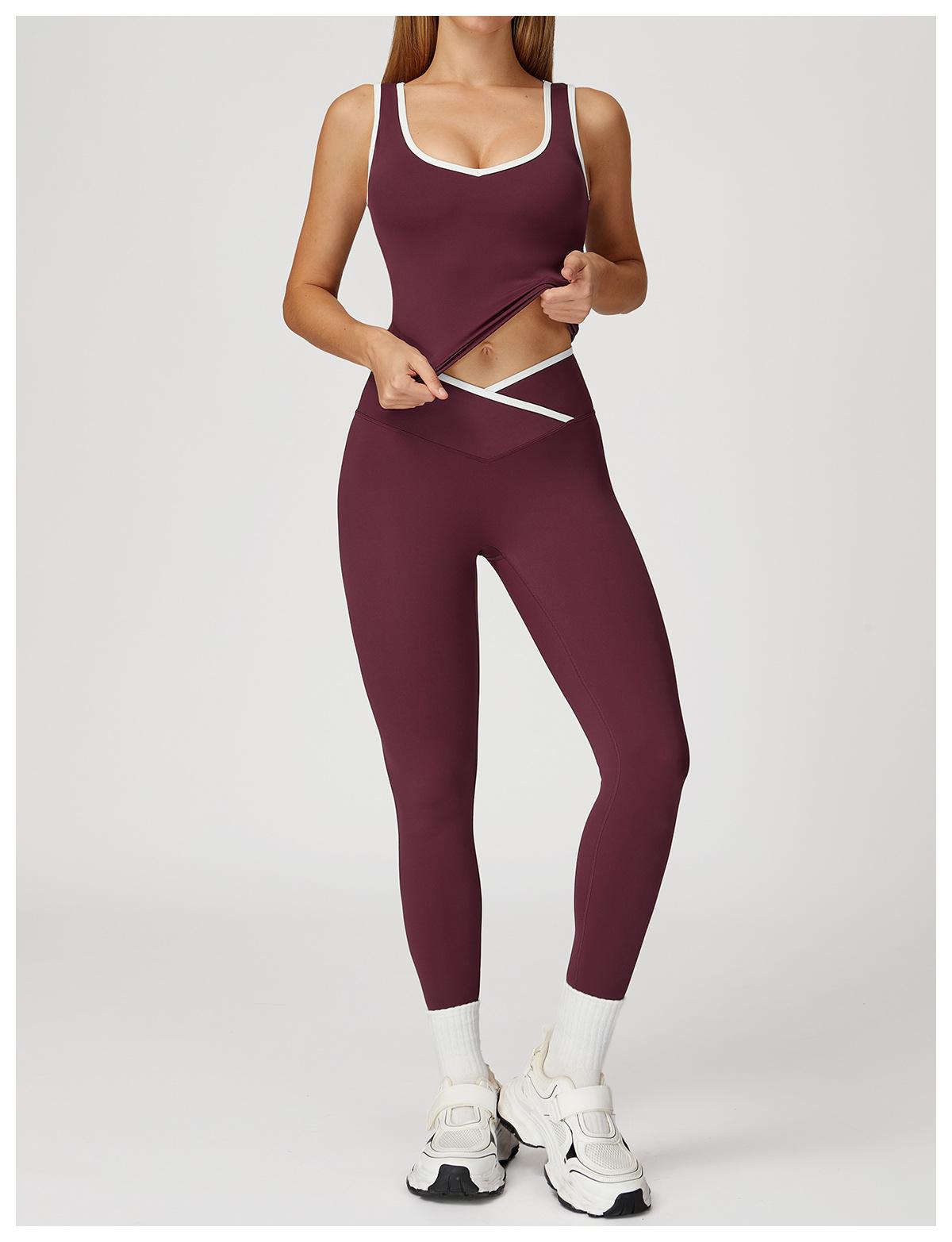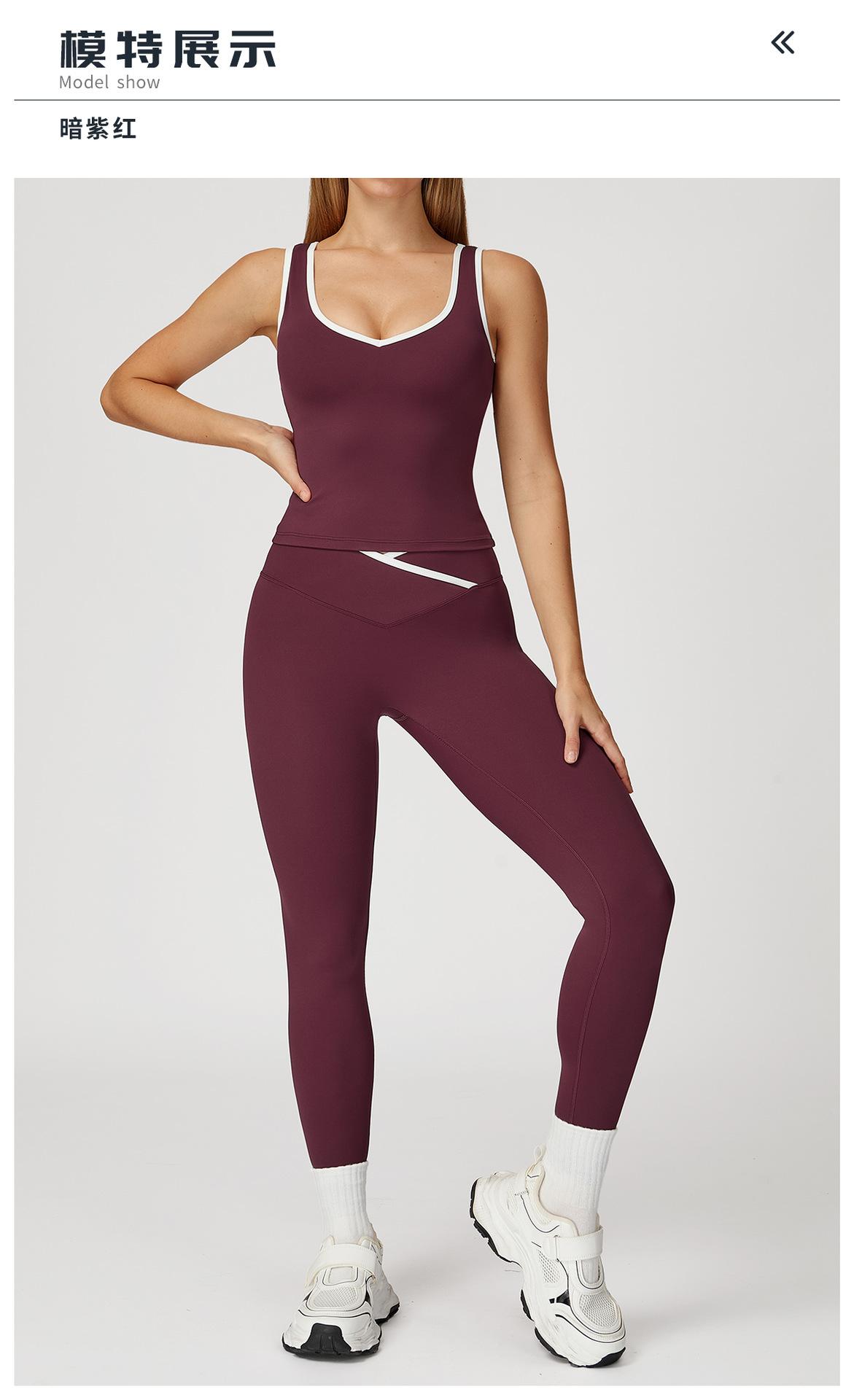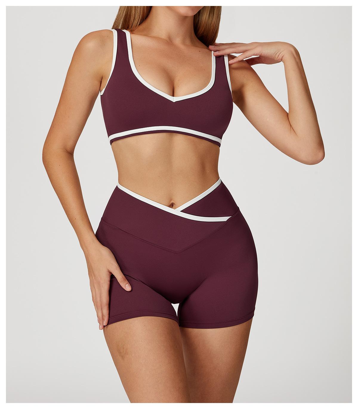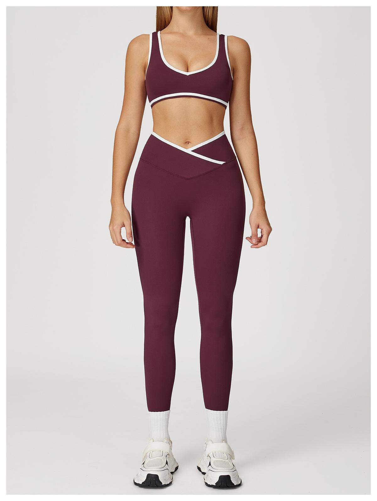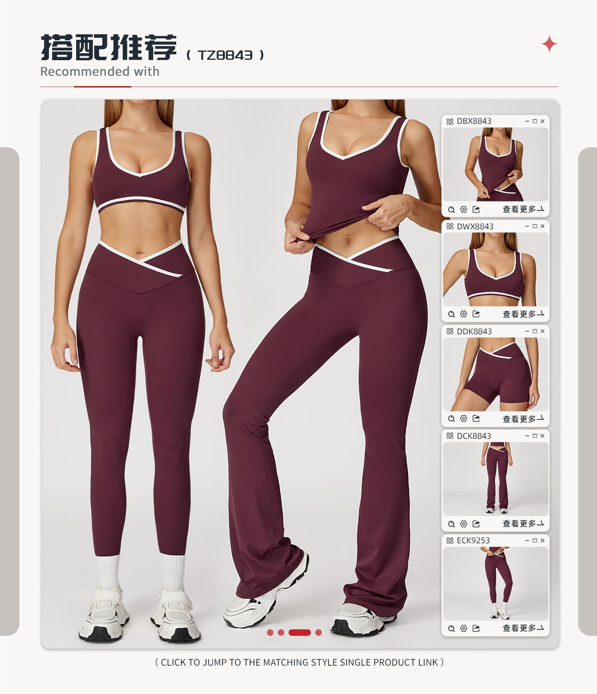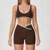 Cruz de cintura alta terno de esportes das mulheres cor de contraste sem encosto apertado nu terno de ioga correndo fitness terno de ioga 8843