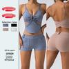Roupa esportiva feminina fitness vitality com contraste de cores, cintura alta, levantamento de quadril, nua, justa, pêssego, roupa de ioga