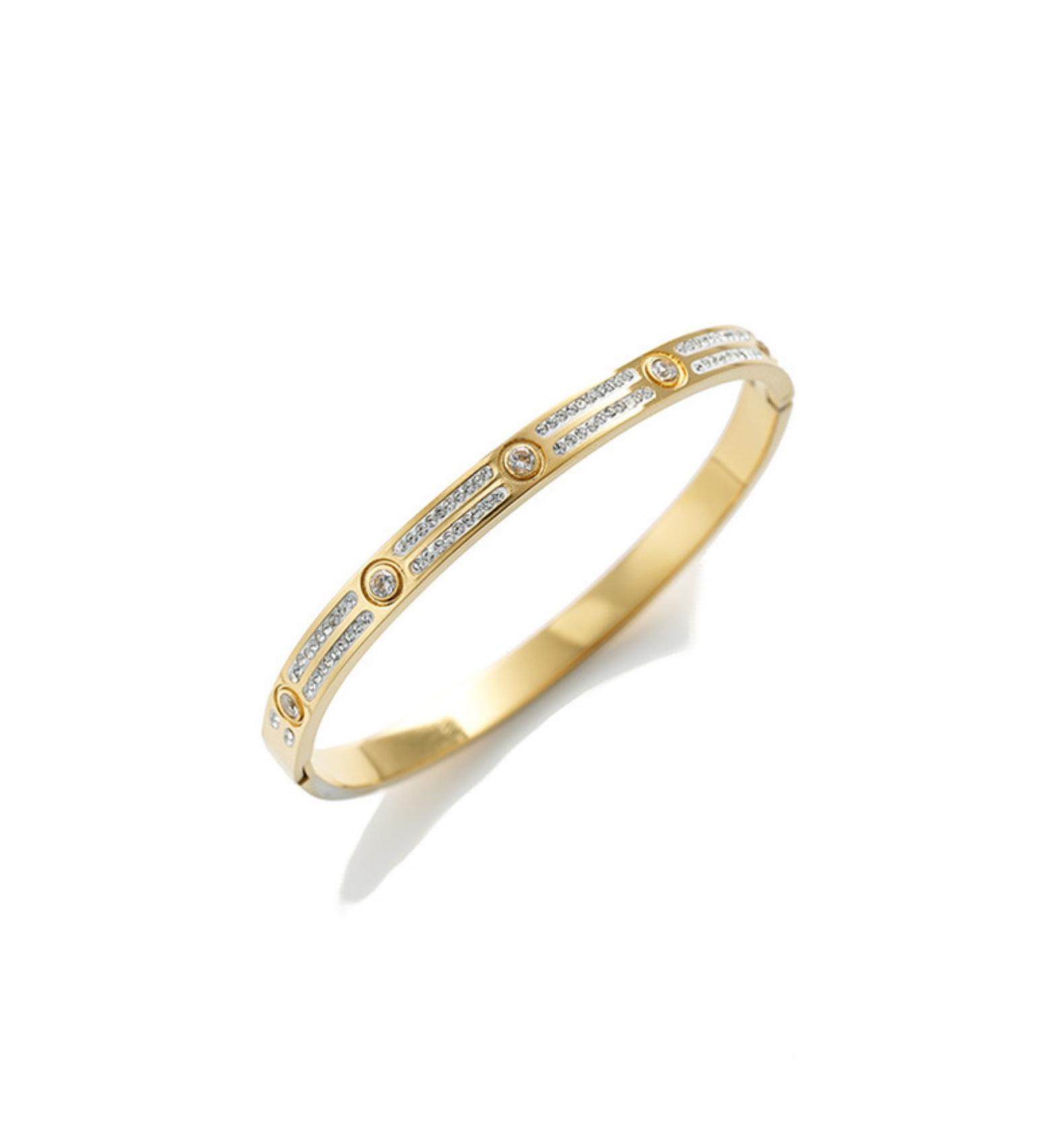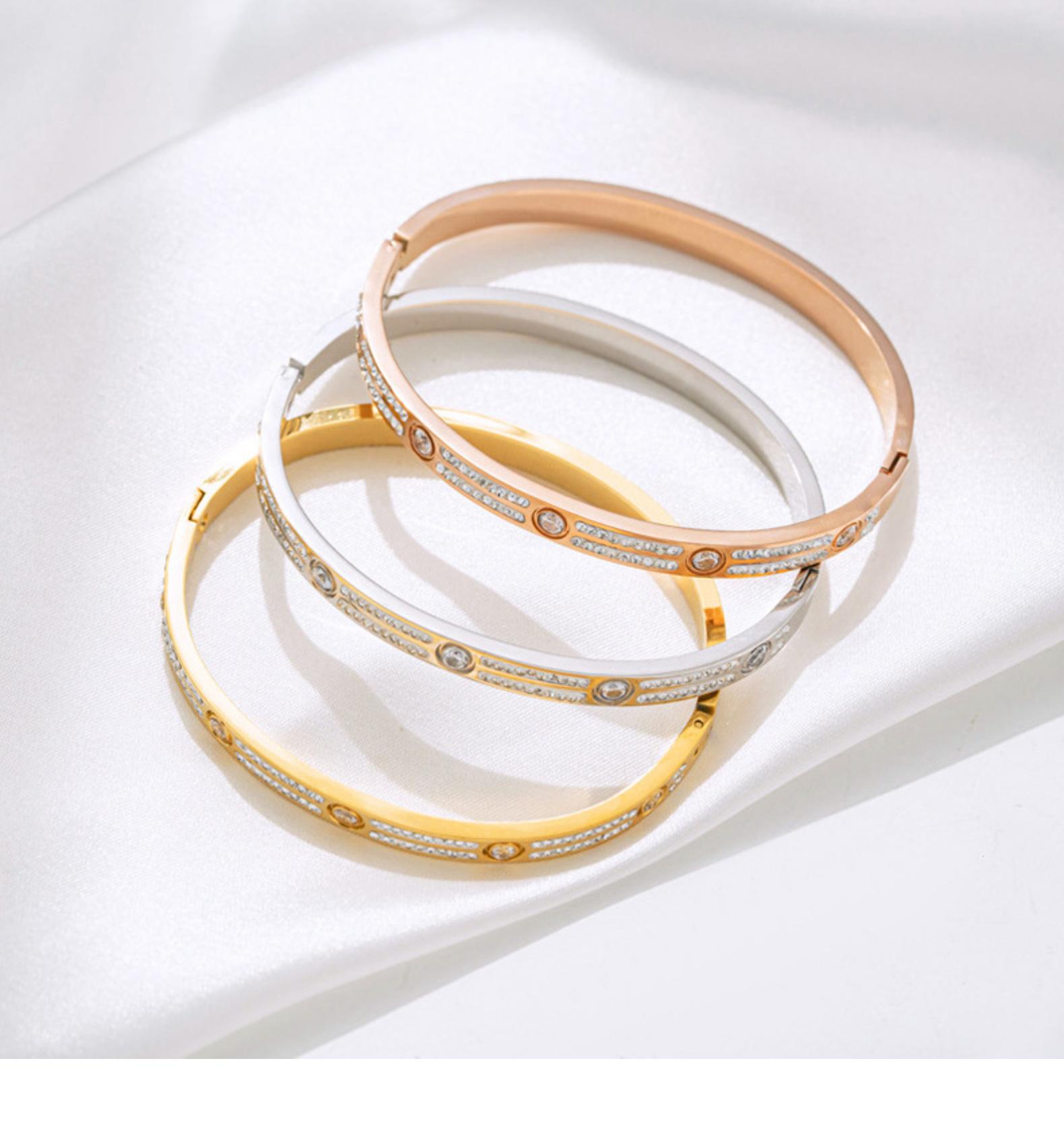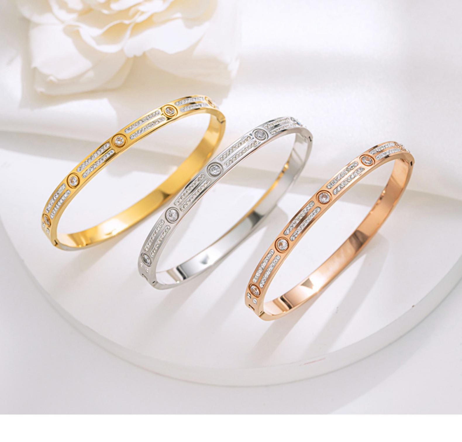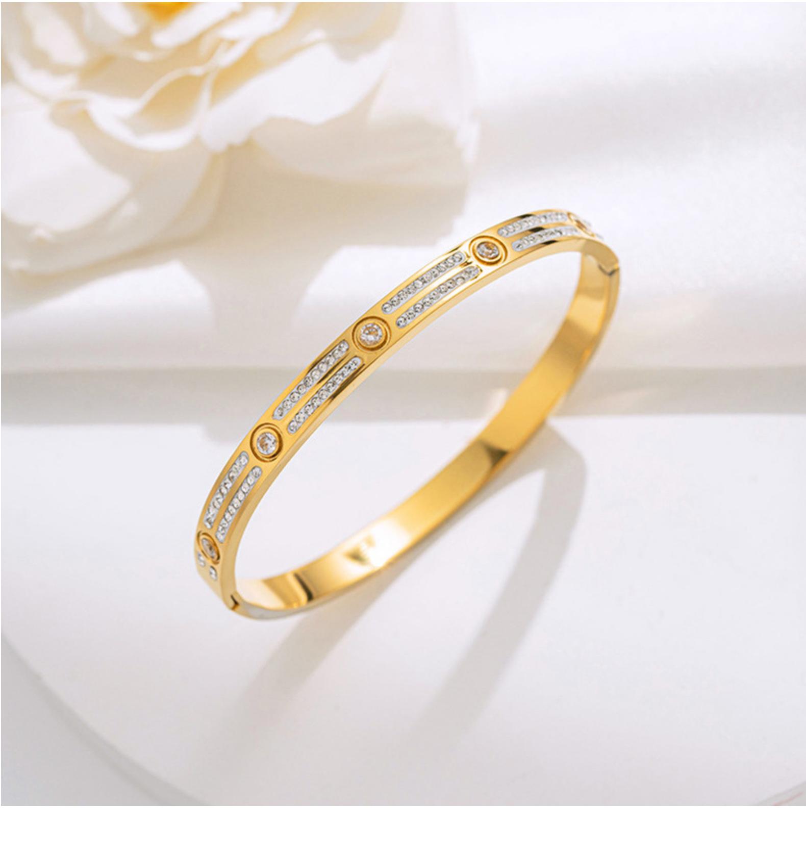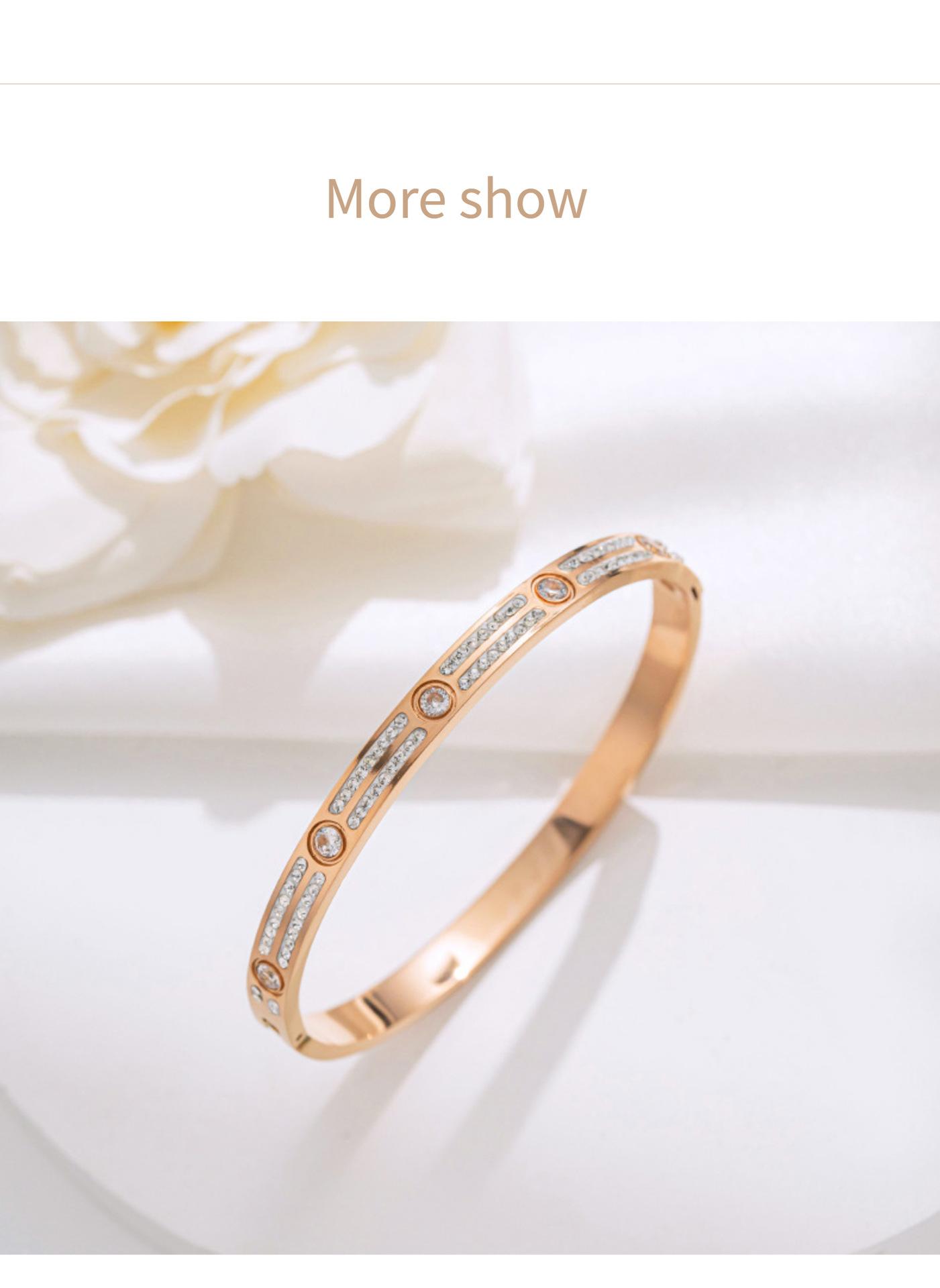 Pulseira de Aço Titânio Cor Livre Fivela de Diamantes Dupla Linha Feminina Eletrofolheada Ouro Rosa 18k Celebridade da Internet Elegante Pulseira de Alta Qualidade