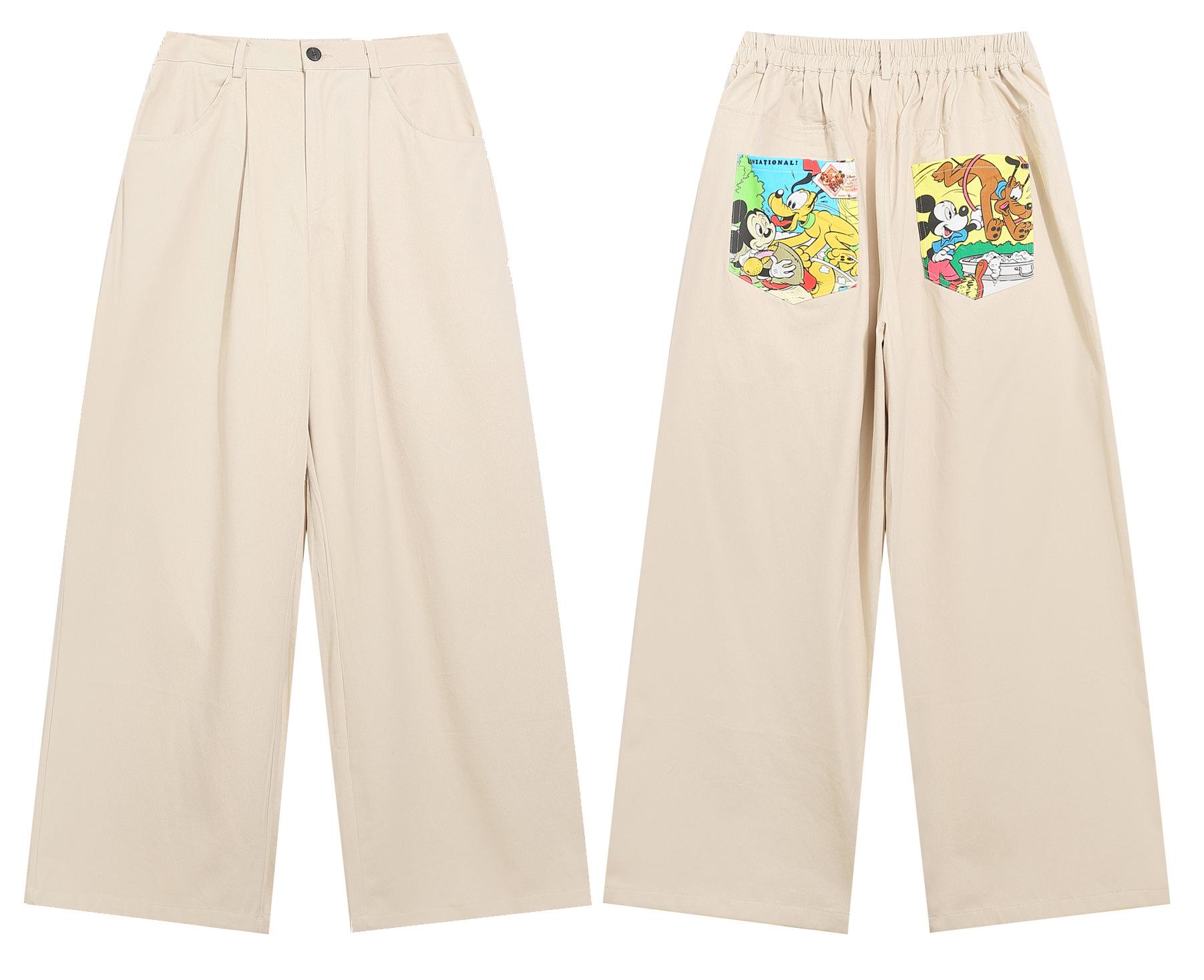 Calças casuais retas estampadas com desenhos animados da marca da moda para homens e mulheres primavera e outono novas calças largas casuais e soltas para todos os tipos de combinações