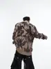 Outono e inverno novo nicho anti-vison decote em V cardigã de malha vintage jacquard suéter solto preguiçoso jaqueta