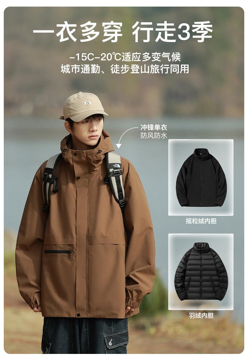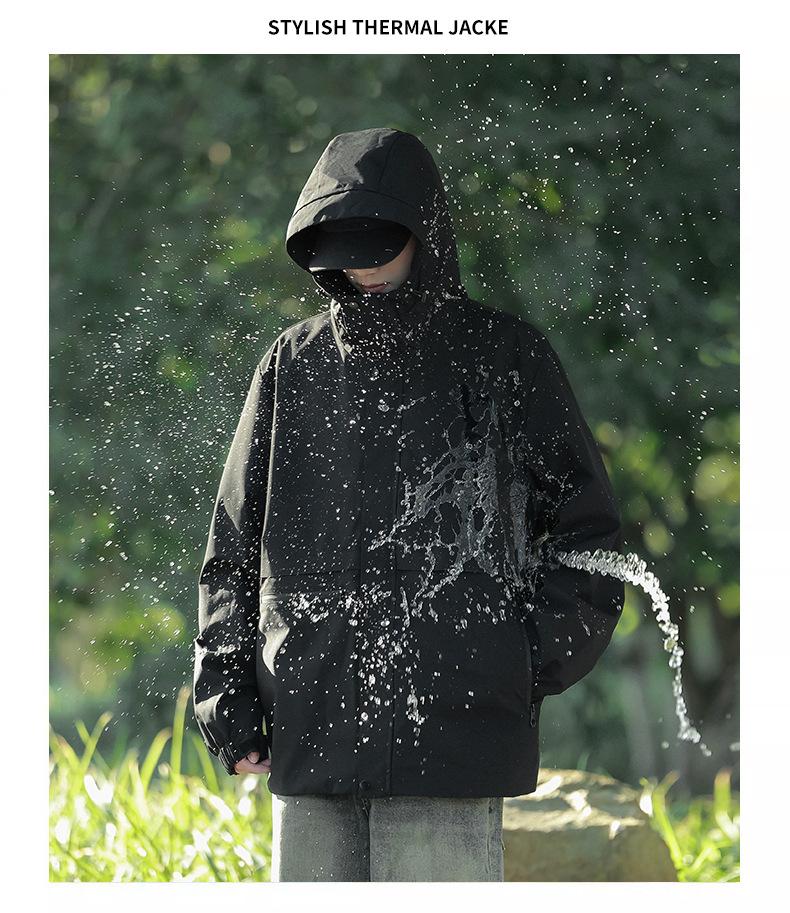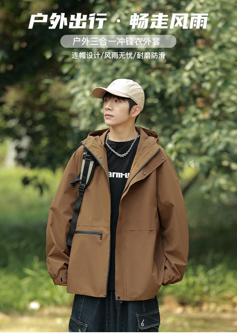 (Jaqueta Simples) Jaqueta Três-Em-Um Jaqueta Masculina com Capuz Removível Jaqueta Quente à Prova de Vento e Impermeável Parka Masculina