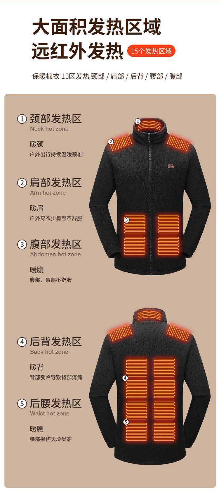 Zona de controle dedicada transfronteiriça 15 aquecimento roupas acolchoadas de algodão moda ao ar livre roupas acolchoadas de algodão casaco de aquecimento quente inteligente roupas acolchoadas de algodão