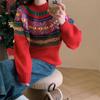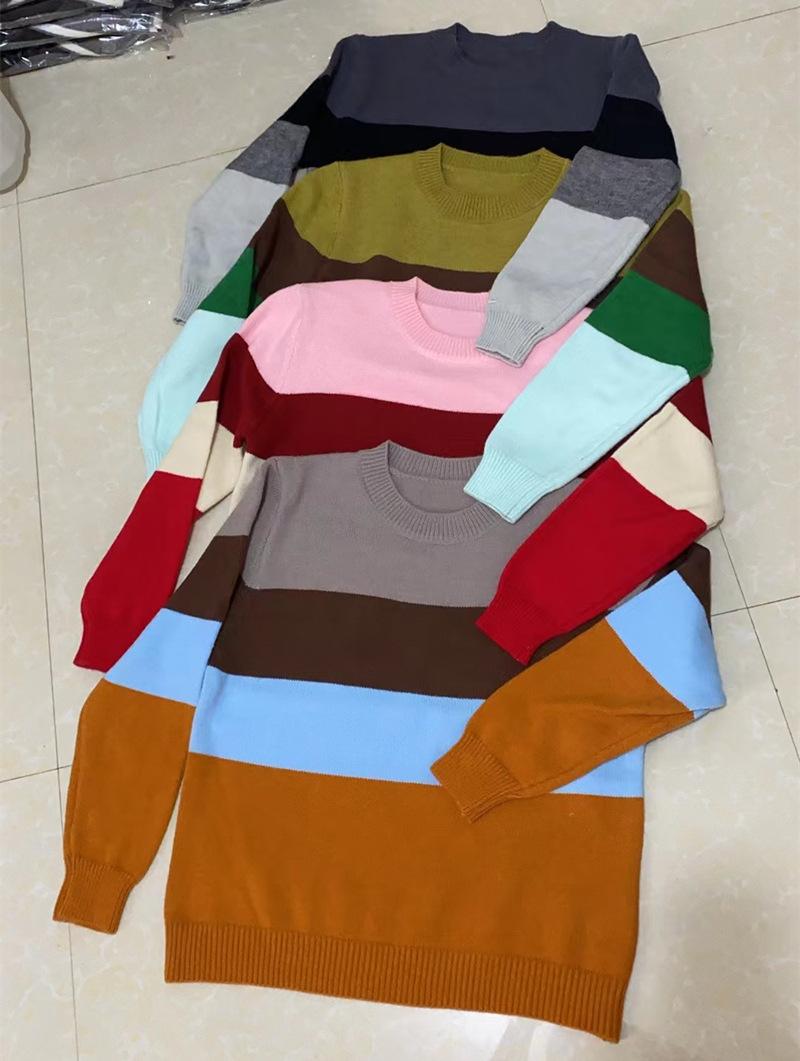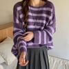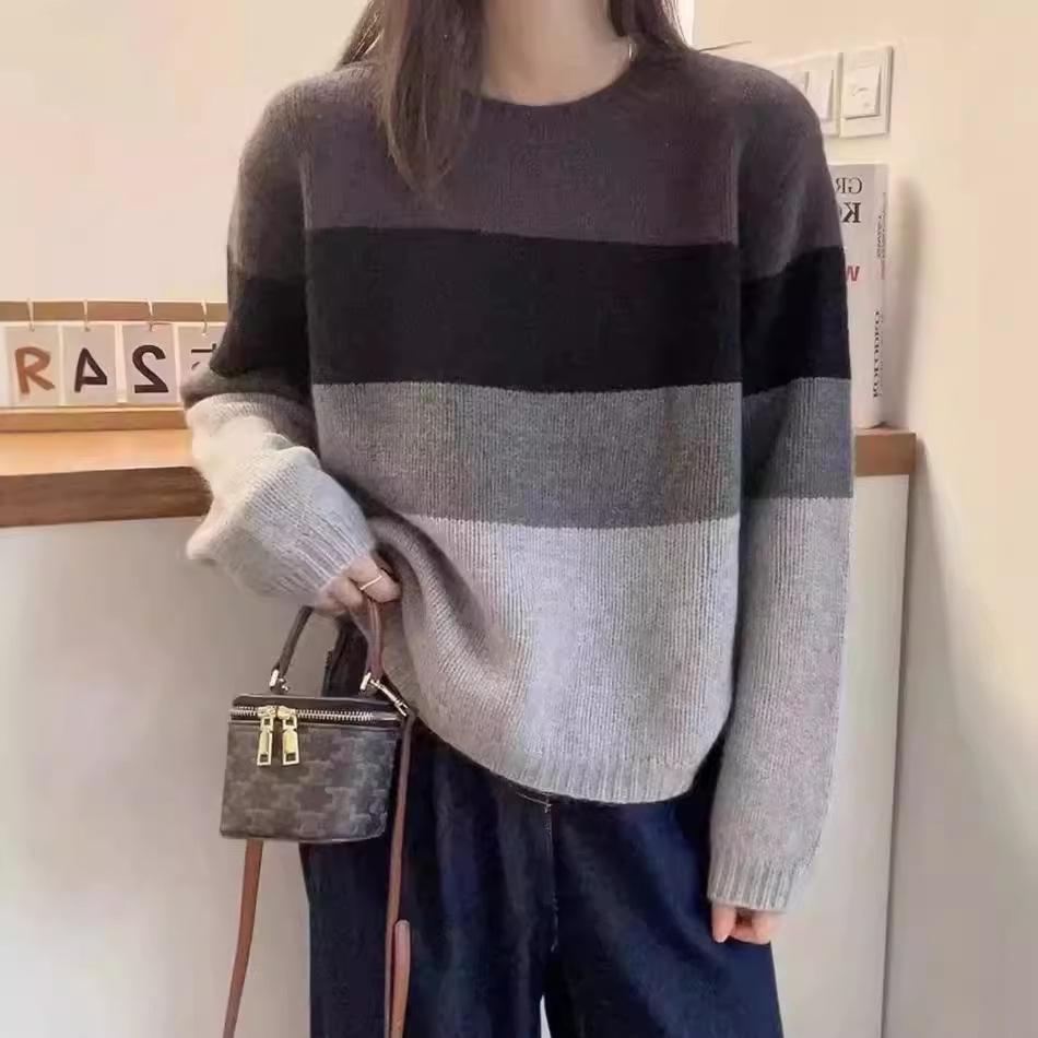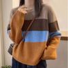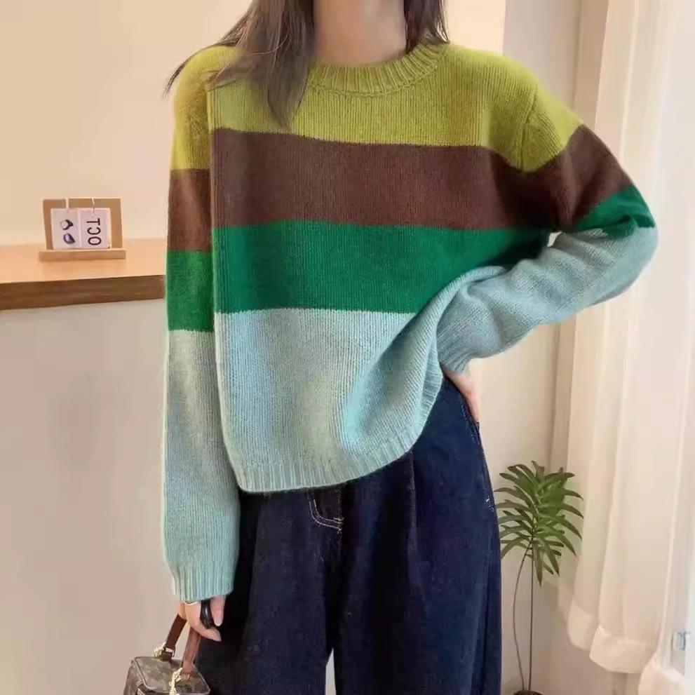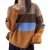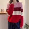 Estilo coreano Combinando Cores Listrado Suéter Mulheres Outono e Inverno Novo Decote Redondo Preguiçoso Suéter de Malha Feminino Retro Manga Comprida Top Feminino