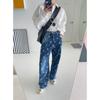 Coreia do Sul roupas femininas Dongdaemun outono e inverno de alta qualidade retro angustiado arco em linha reta jeans casuais