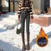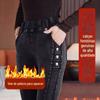 Outono e inverno forrado de lã engrossado de três botões jeans de cintura alta Calças femininas de emagrecimento apertado de alta elasticidade