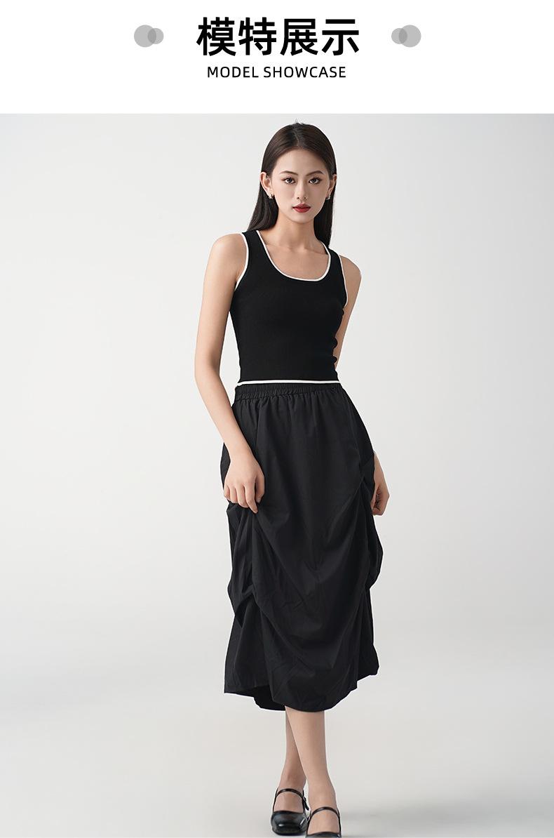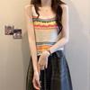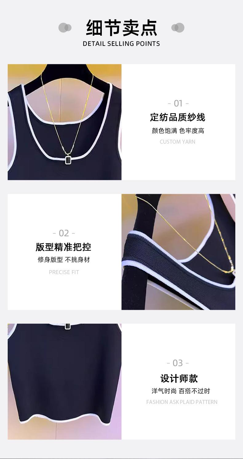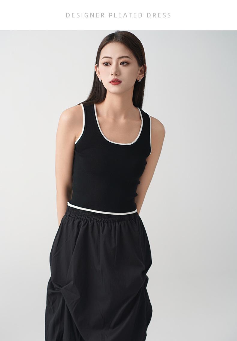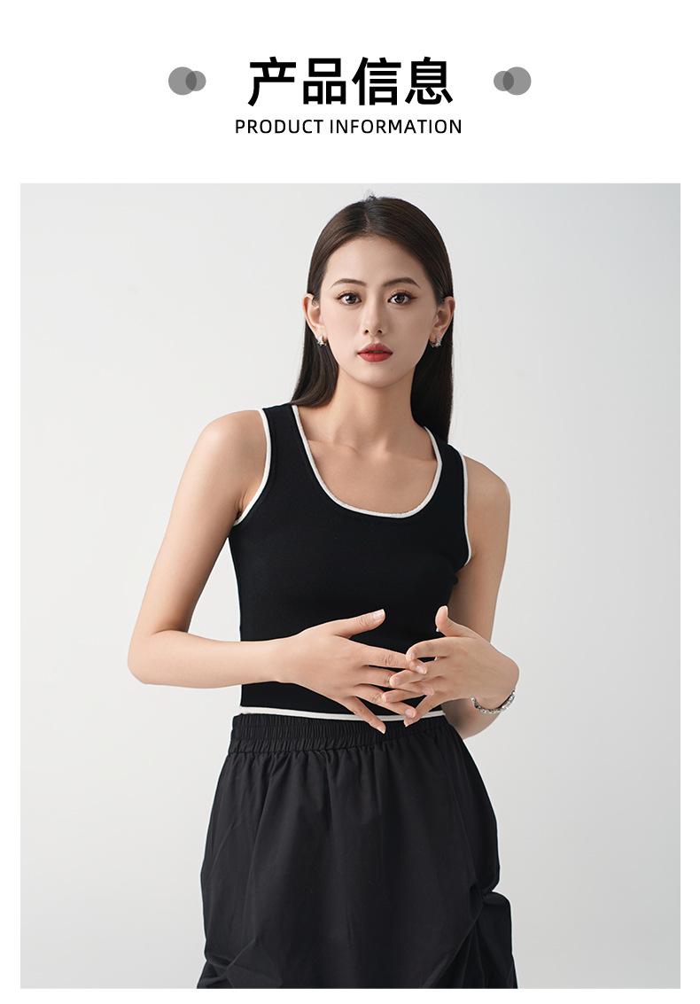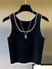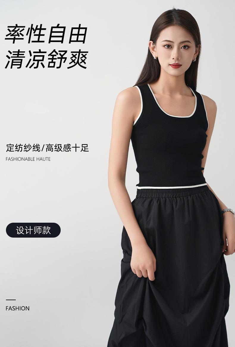 Regata Preta de Tricô Camada Interna Feminina Verão Roupa Externa Look Emagrecedor Cintura Curta Top Elástico