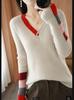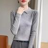 Suéter de Caxemira com Colarinho POLO para Mulheres 2024 Outono e Inverno Nova Lapela Solta Slim Malha Base Camisa Suéter Curto Pulôver