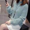 Suéter de veludo de imitação de vison branco outono e inverno feminino estilo coreano manga lanterna solta cor base camisa suéter grosso com contas