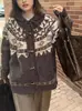 Vintage Corner Buckle Jacquard Sweater Coat Outono e Inverno Feminino Novo Estilo Preguiçoso Com Capuz Cardigan de Malha Casaco Feminino