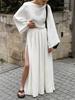 Moda Primavera 2025 Top Branco de Algodão Enrugado Bolha Saia Longa Conjunto Feminino Solto Casual Estilo Resort Conjunto de Duas Peças