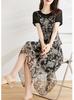 Vestido Chiffon Estampado Fake Duas Peças Femininas Verão 2024 Novo Revestimento da barriga Emagrecendo Elegante Saia Irregular Linha A de comprimento médio
