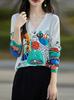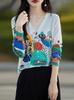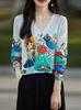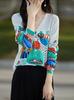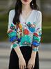 Estação Europeia 2024 Primavera e Outono Novo Estilo Francês Elegante Impresso Malha Cardigã de Manga Comprida Casaco Feminino All-match Decote em V Top