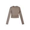 Camiseta Estilo Gola Redonda Cor Sólida 2024 Outono Novo Feminino Estilo Coreano Cor Pura Fenda Camiseta de Manga Longa Top Feminino