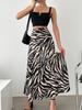 Saia Elegante com Estampa de Zebra da Amazon para Mulheres Primavera 2026 Nova Saia A-Line Midi de Cintura Alta com Bloco de Cores Transfronteiriço