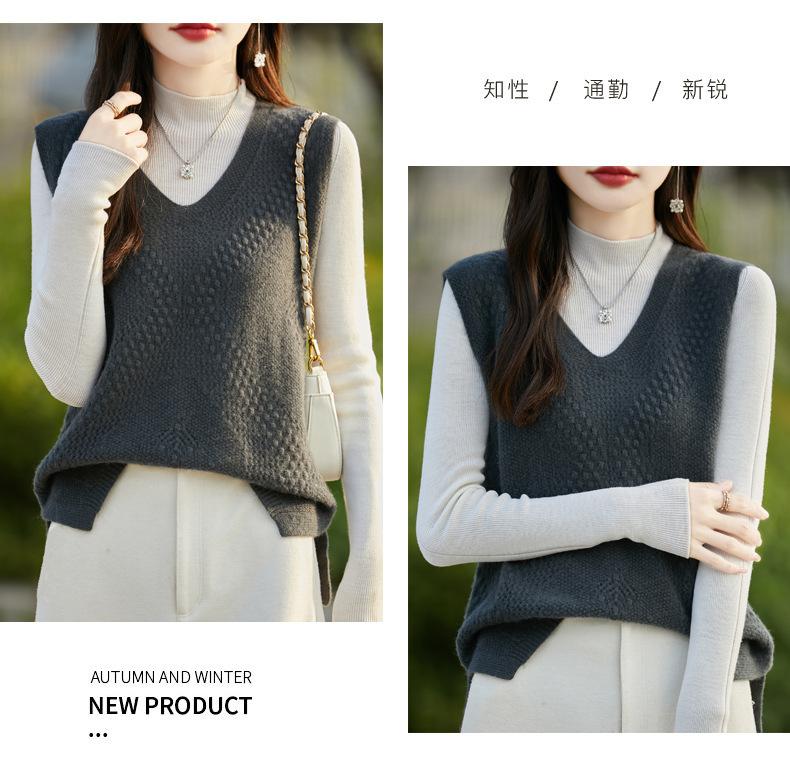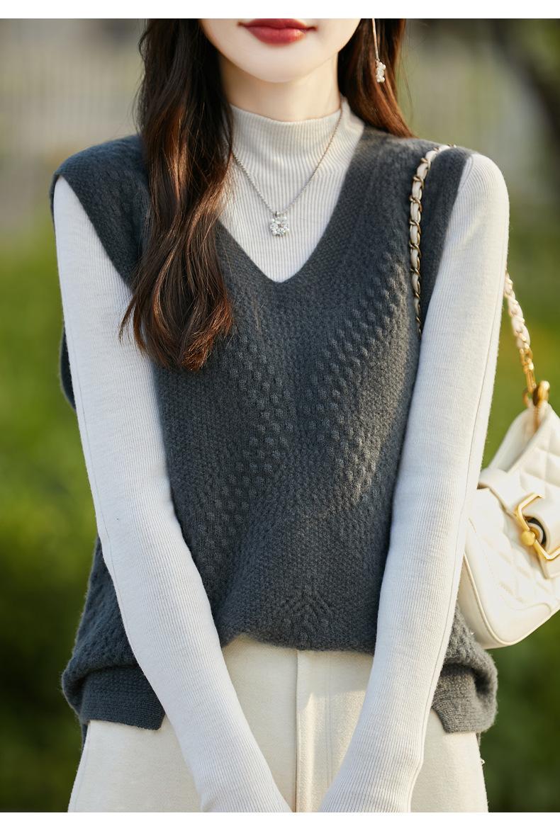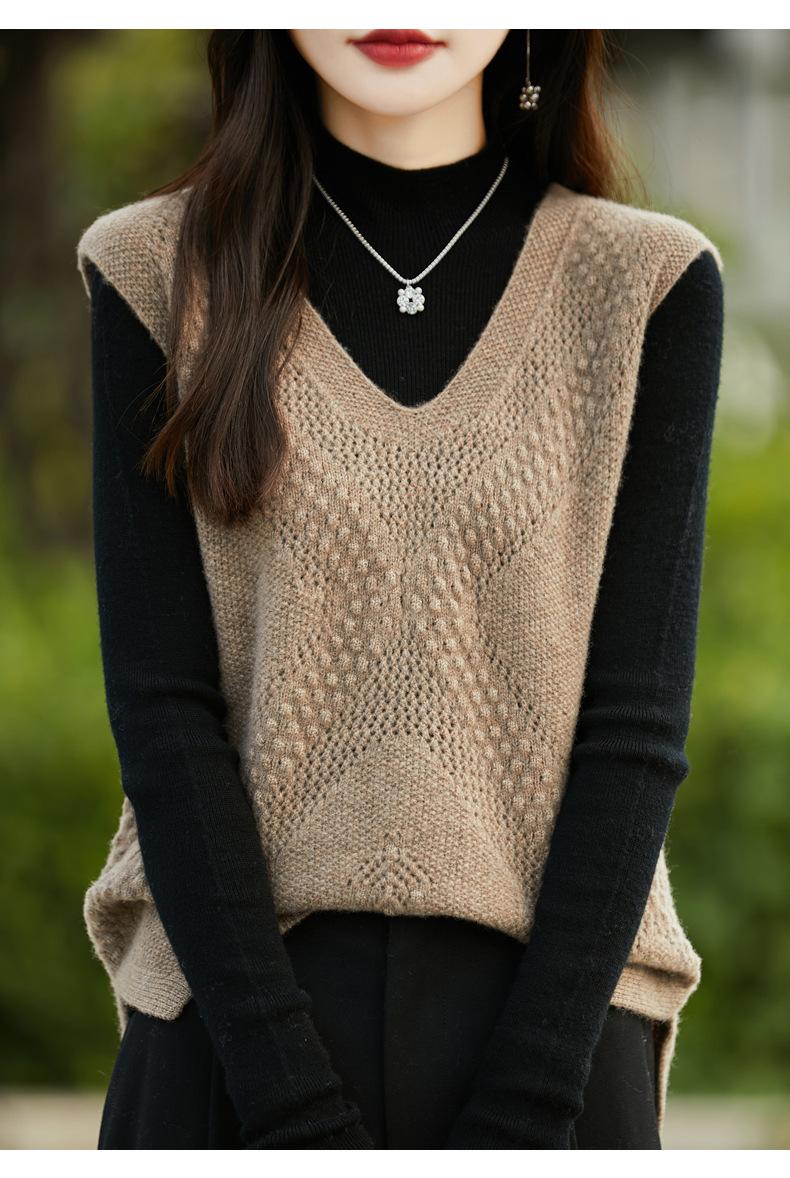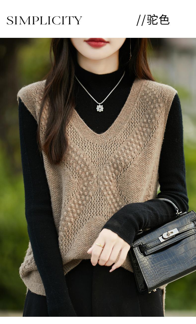 Colete de malha feminino novo outono 2024, colete com decote em V, jacquard solto, Andy, veludo, atacado de fábrica