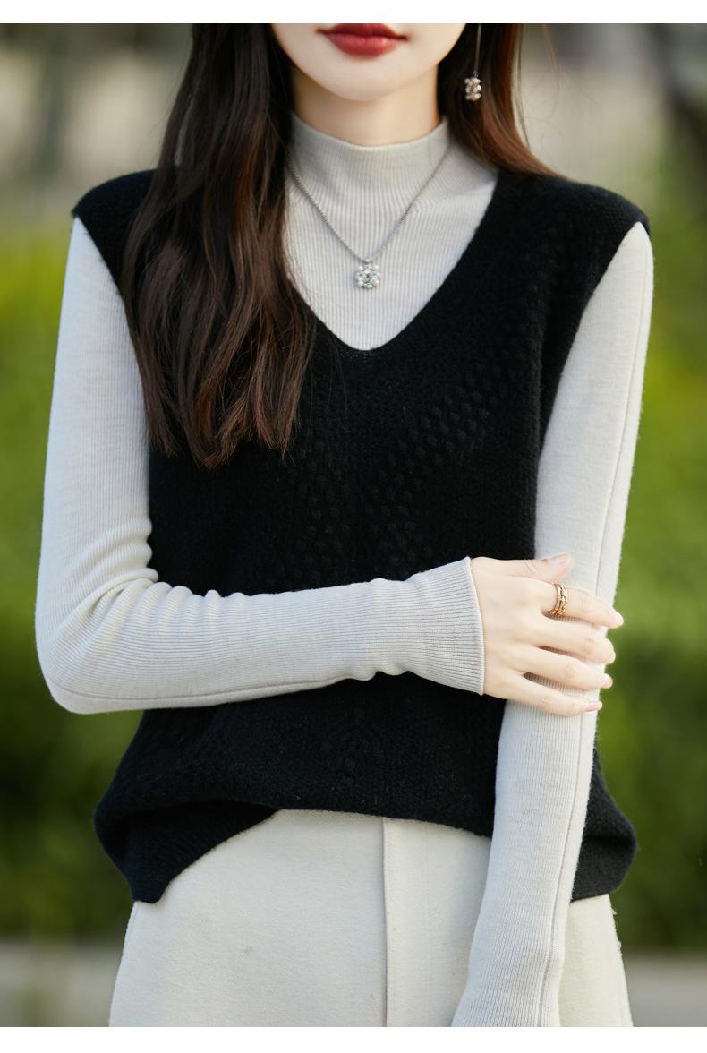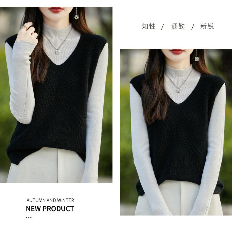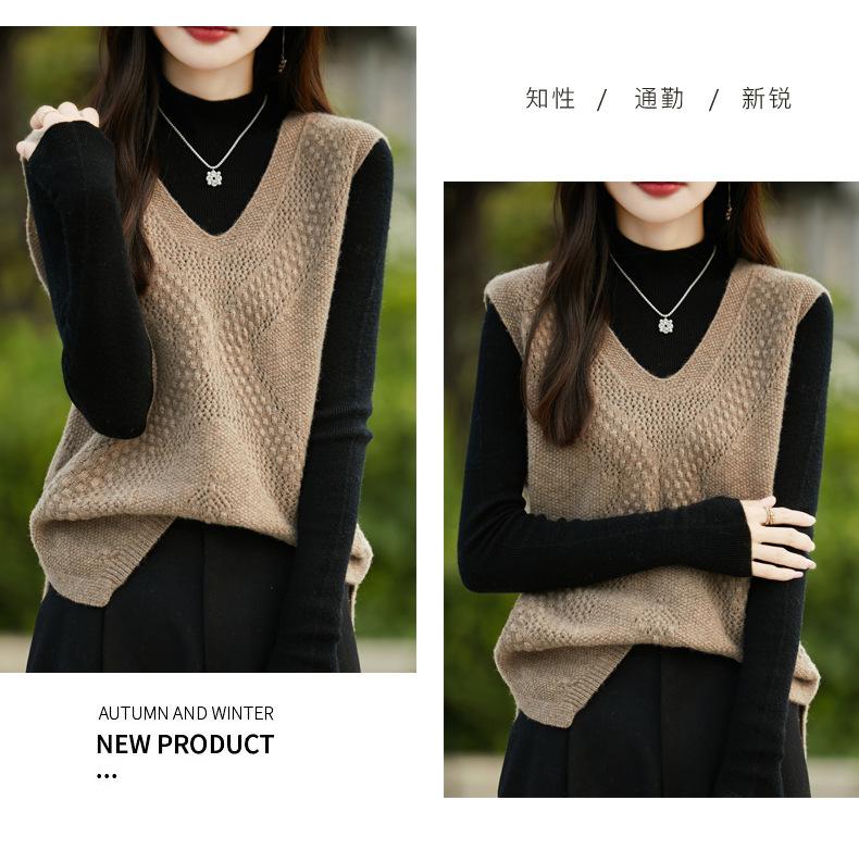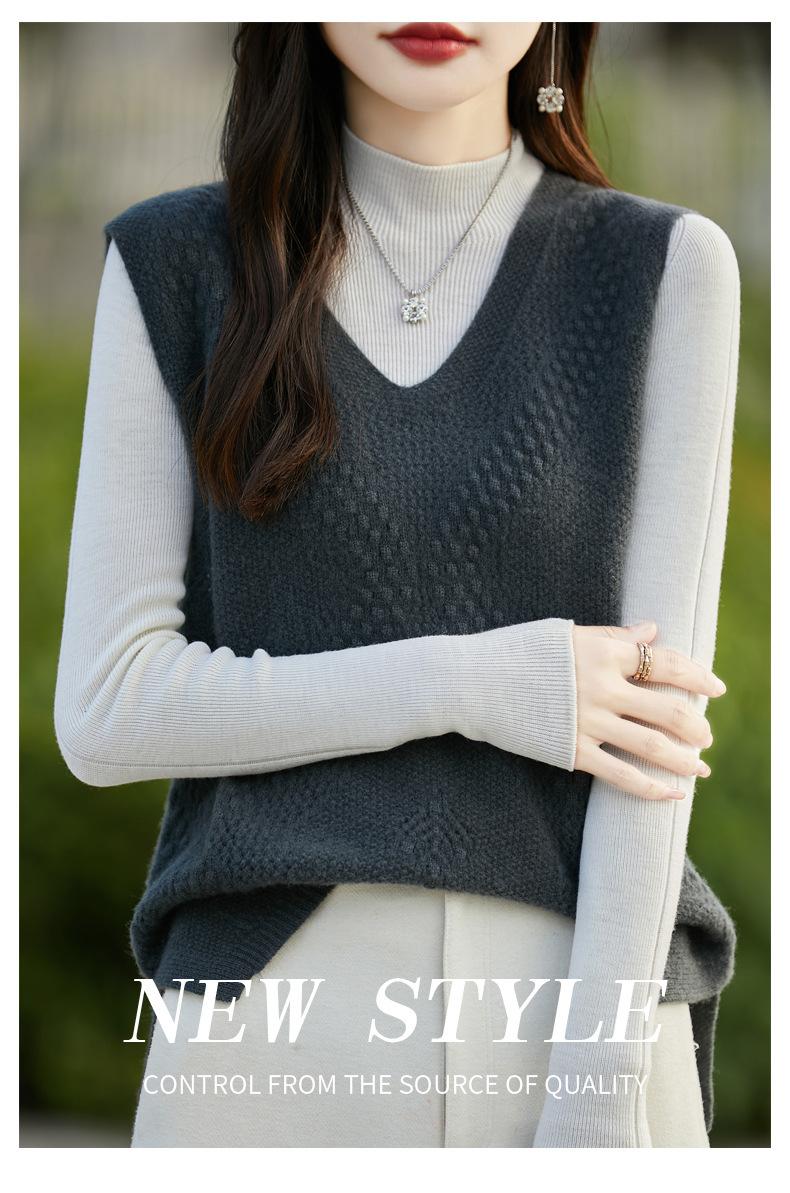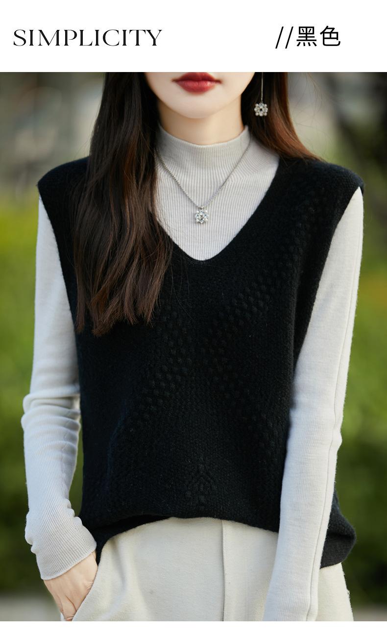 Colete de malha feminino novo outono 2024, colete com decote em V, jacquard solto, Andy, veludo, atacado de fábrica