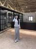 Saia Longa Cinza Drapeado Slim-fit Solta All-match Saia Reta Casual High-end A- line Saia Longa