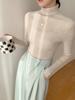 Vestuário de primeira linha feminino sem costura lapela alta suéter de cashmere Colarinho de pilha feminino Slim-Fit Camisola de base de malha outono e inverno