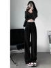Jeans de perna reta retrô americano Nova chegada cintura alta solta slim look perna larga calças da moda para a primavera e o verão de 2024