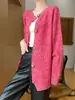 Novo Outono e Inverno Flora Series Cardigan de Lã Longa Feminino Crewneck Loose-fit Crewneck Cashmere Base Sweater