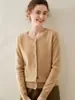 Novo Cardigã Feminino de Caxemira de Manga Comprida e Gola Redonda para Outono e Inverno com Botões de Abotoadura Simples e Cardigã de Tricô de Caxemira