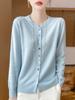 Cardigã de malha de lã pura simples de outono e inverno feminino 2024 novo casaco de fivela de manga comprida com gola redonda