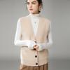 Colete de caxemira 2024 outono e inverno novo cardigã de malha com decote em V feminino estilo casual trespassado sem mangas colete quente
