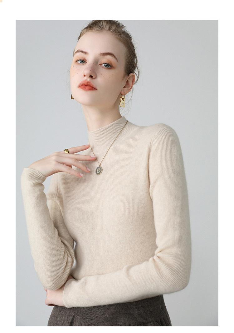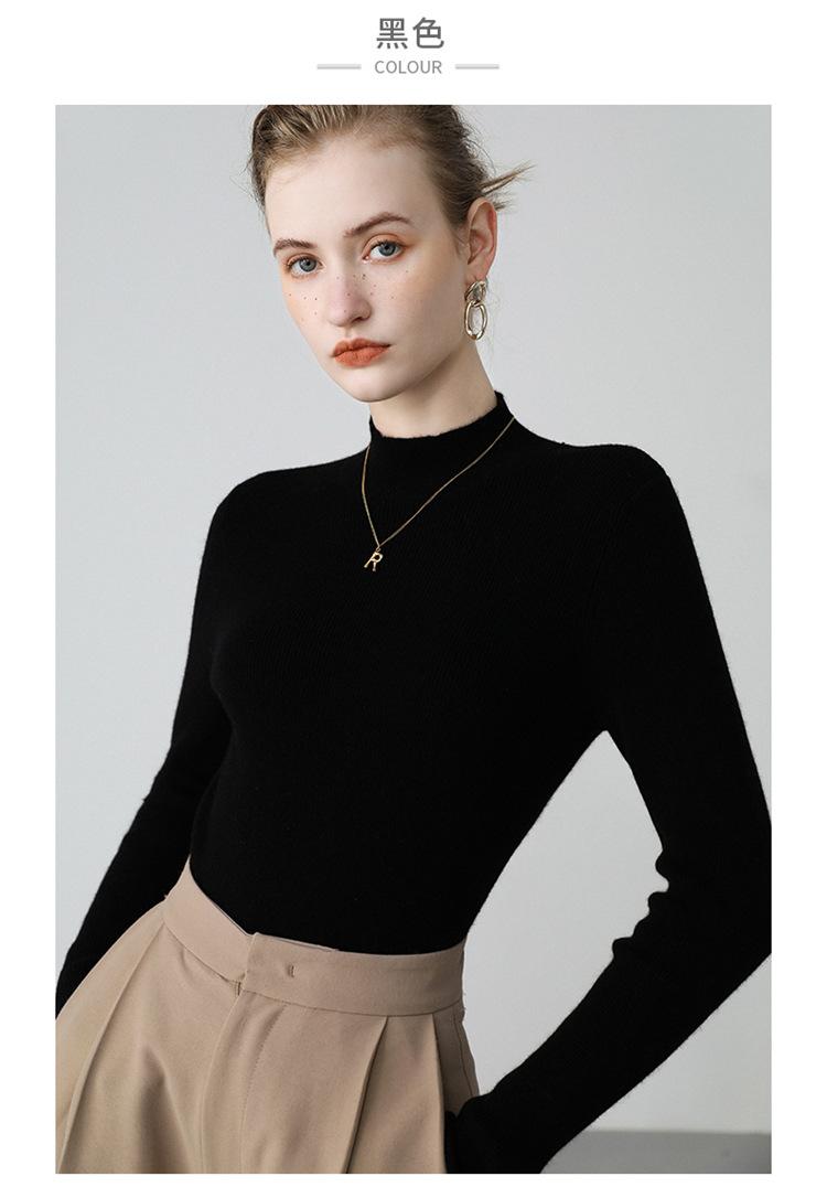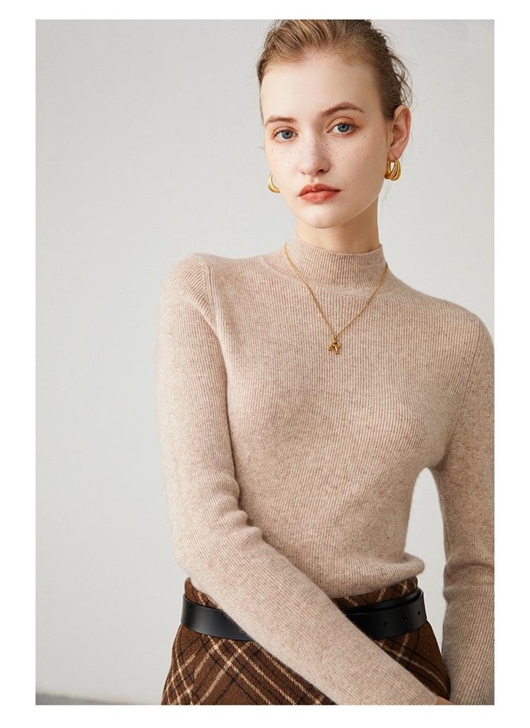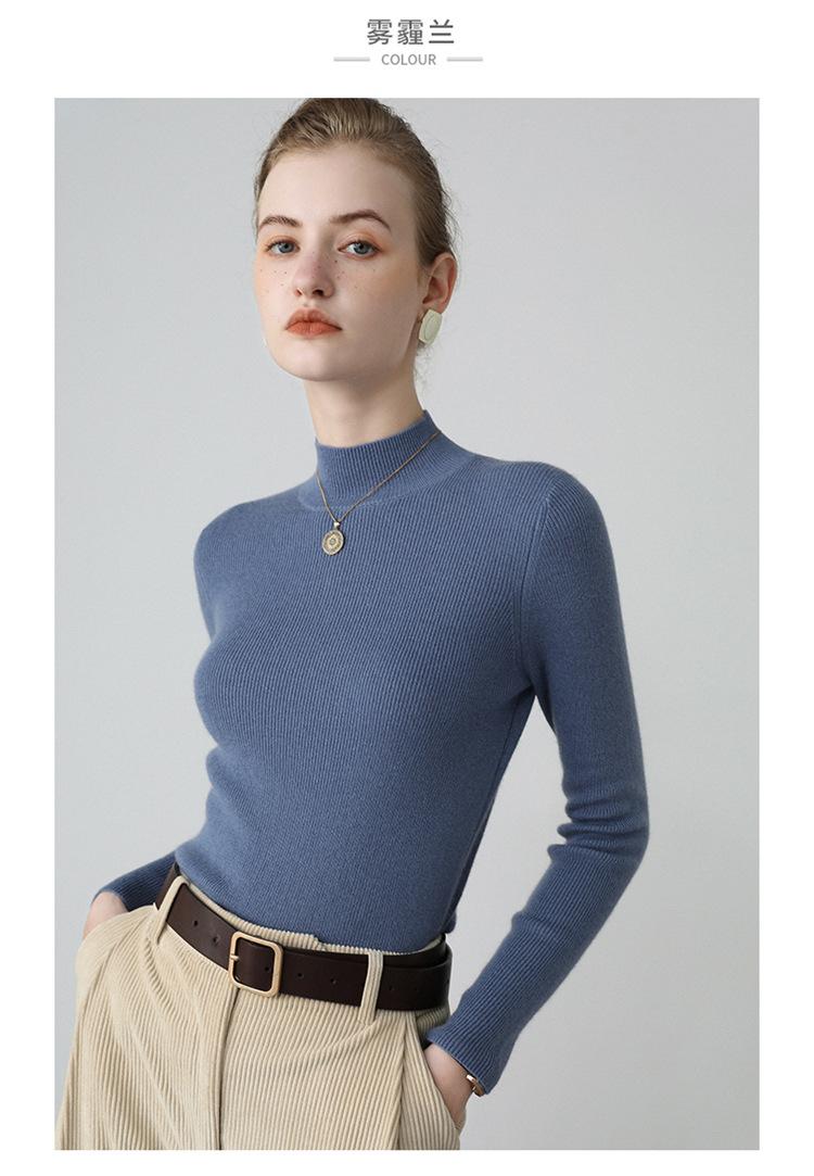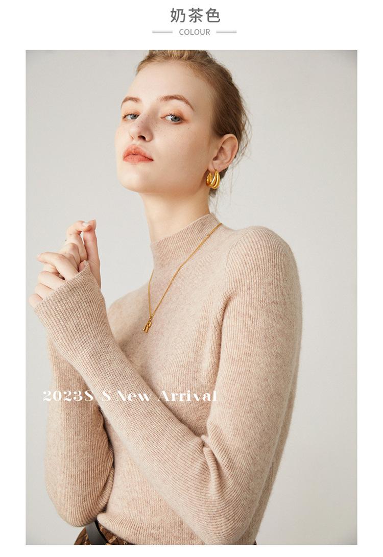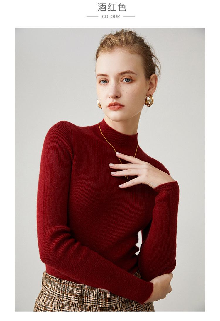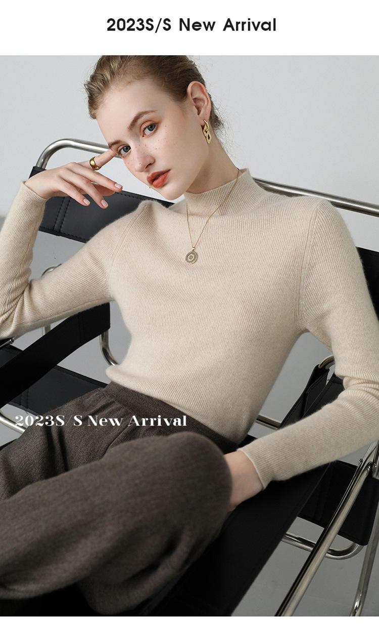 Suéter de Caxemira Feminino Gola Alta Manga Longa Pulôver Primavera e Outono Novo Ajuste Slim Lã Tricotada para Usar por Baixo Lã