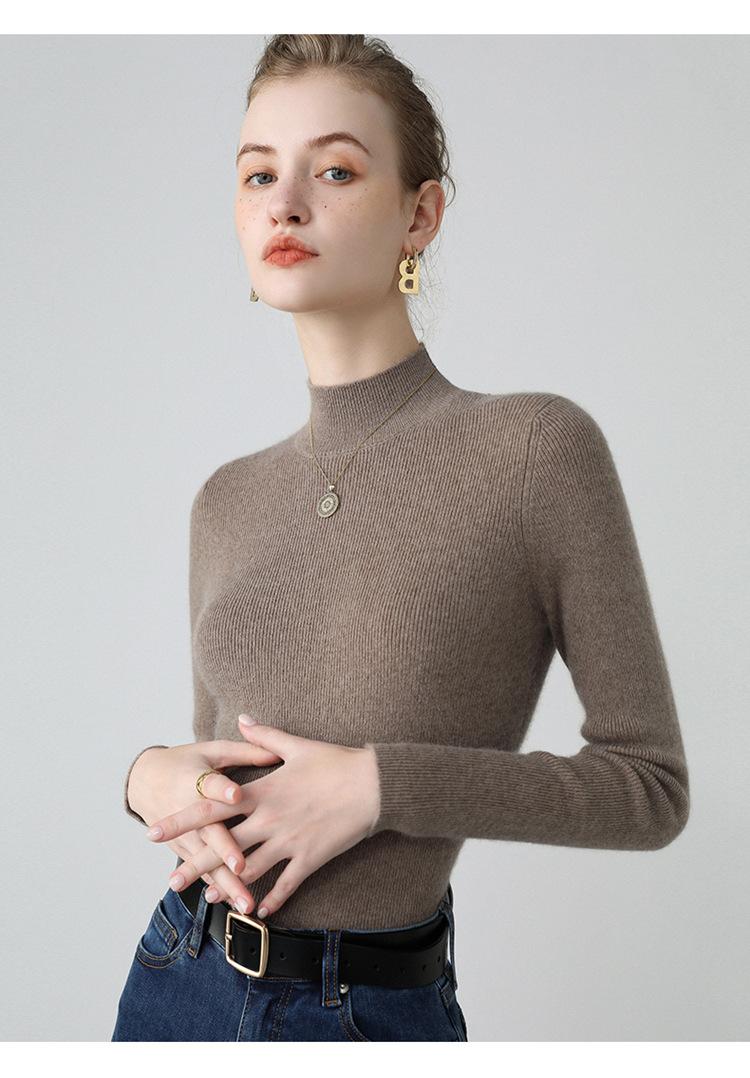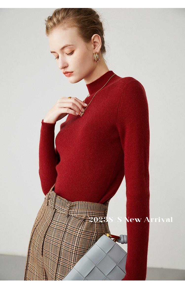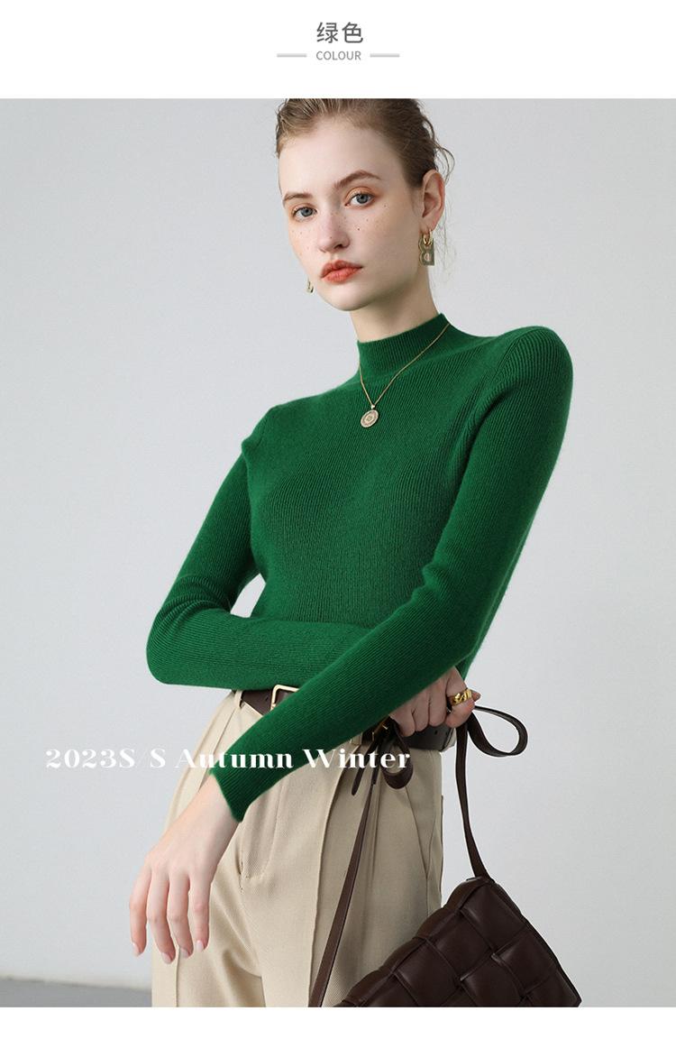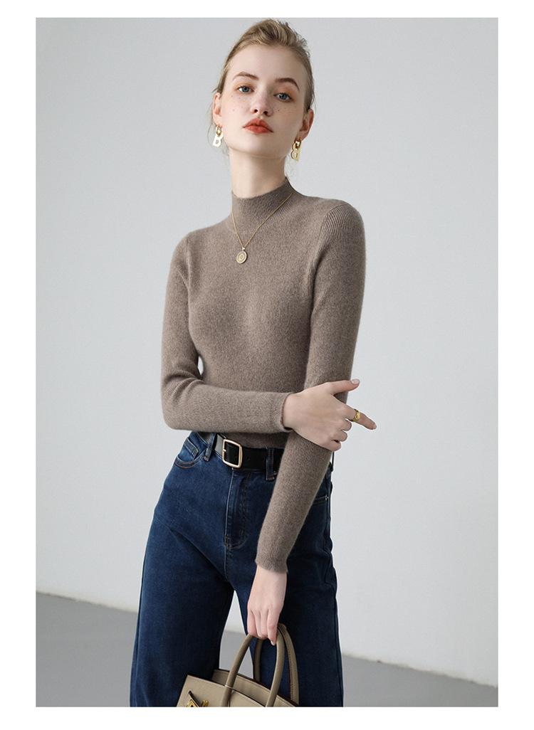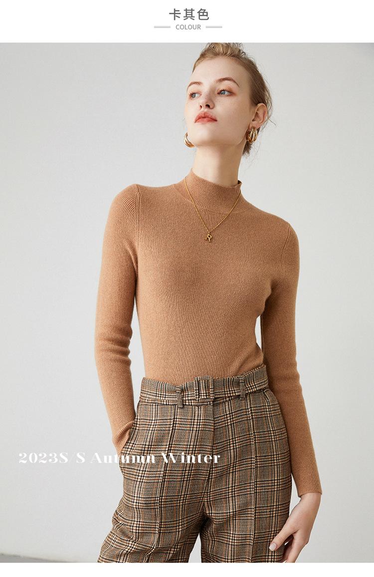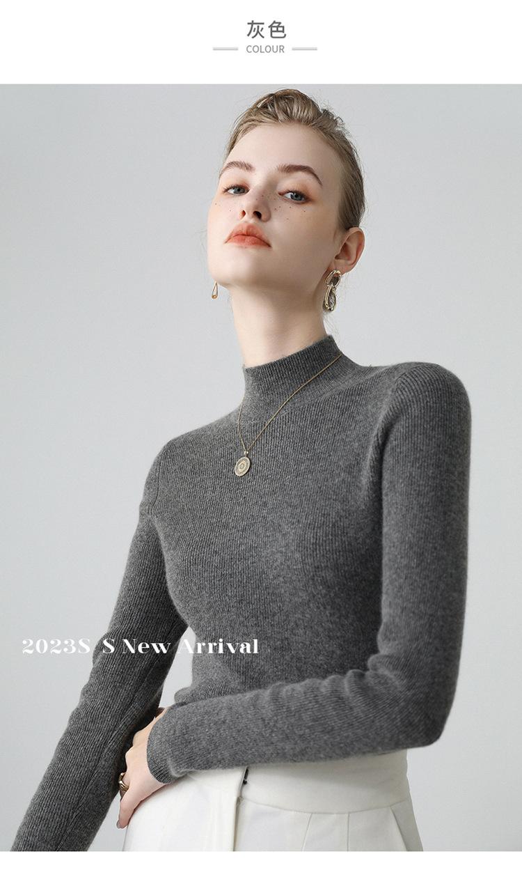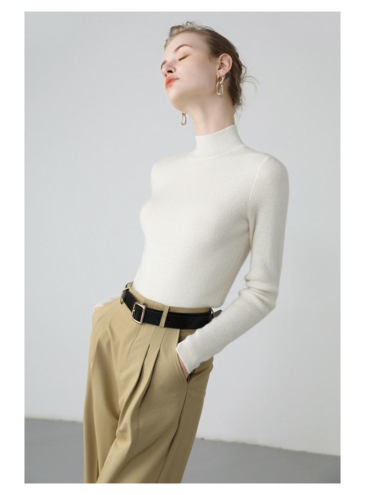 Suéter de Caxemira Feminino Gola Alta Manga Longa Pulôver Primavera e Outono Novo Ajuste Slim Lã Tricotada para Usar por Baixo Lã