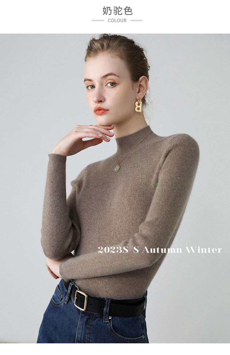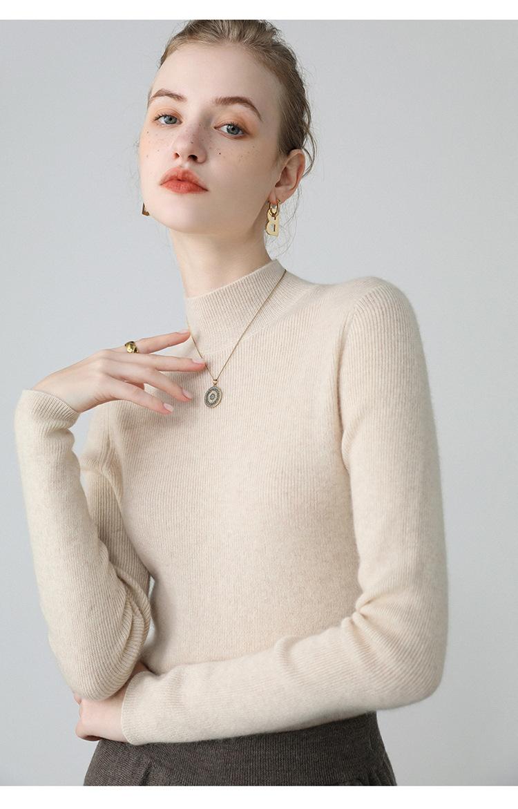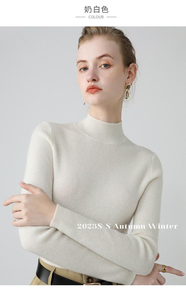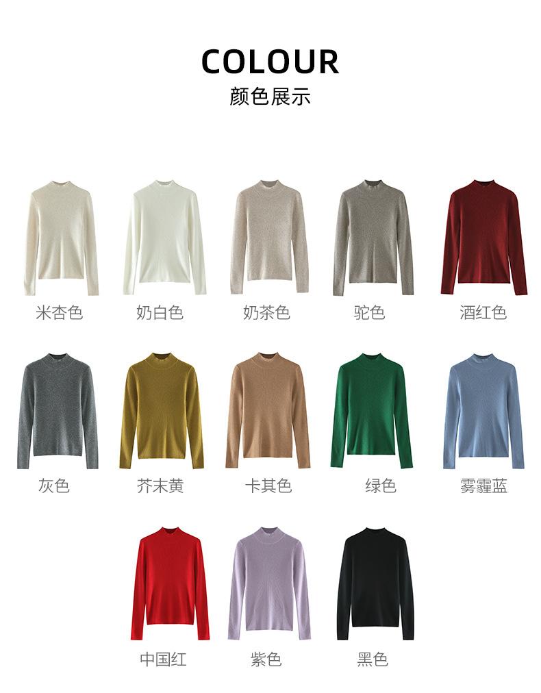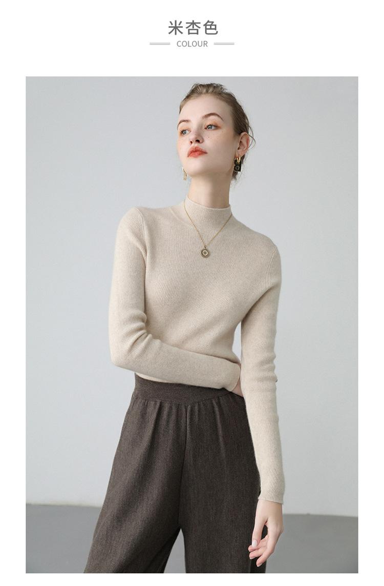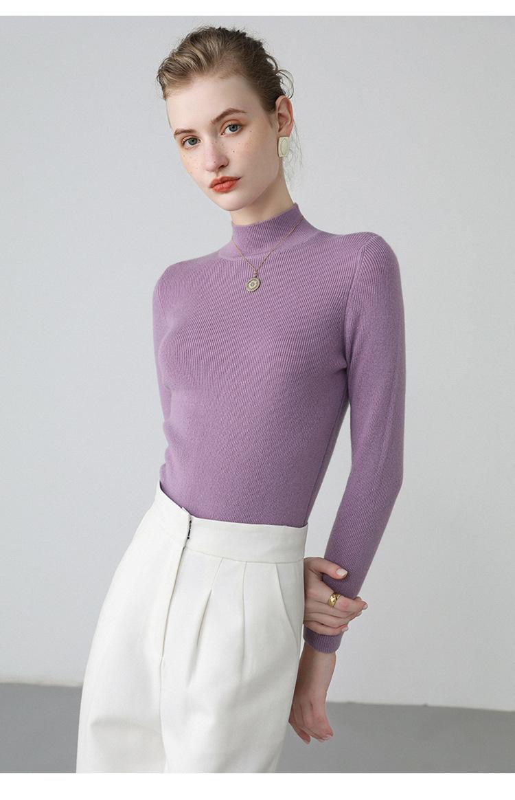 Suéter de Caxemira Feminino Gola Alta Manga Longa Pulôver Primavera e Outono Novo Ajuste Slim Lã Tricotada para Usar por Baixo Lã