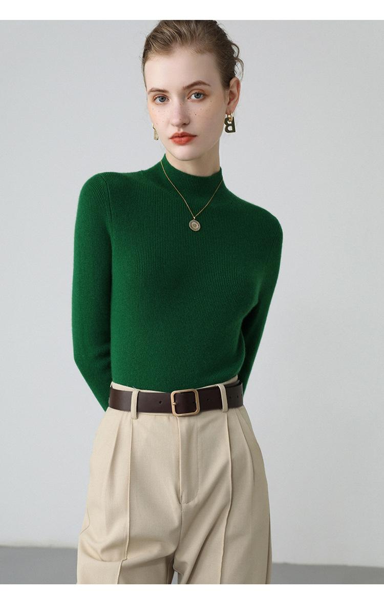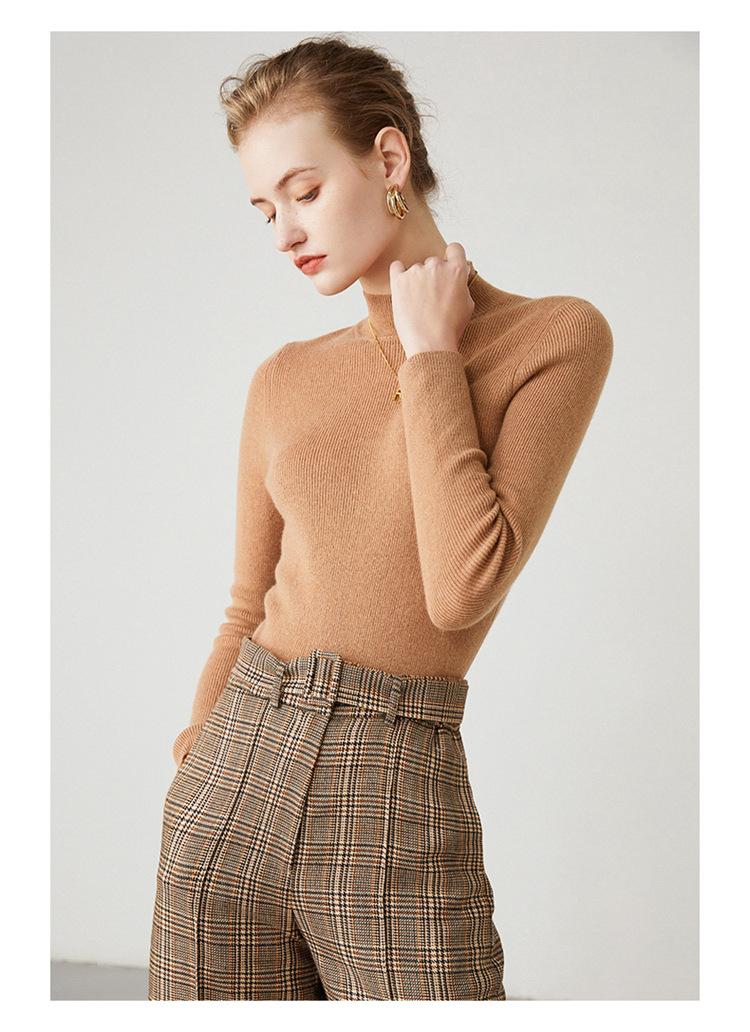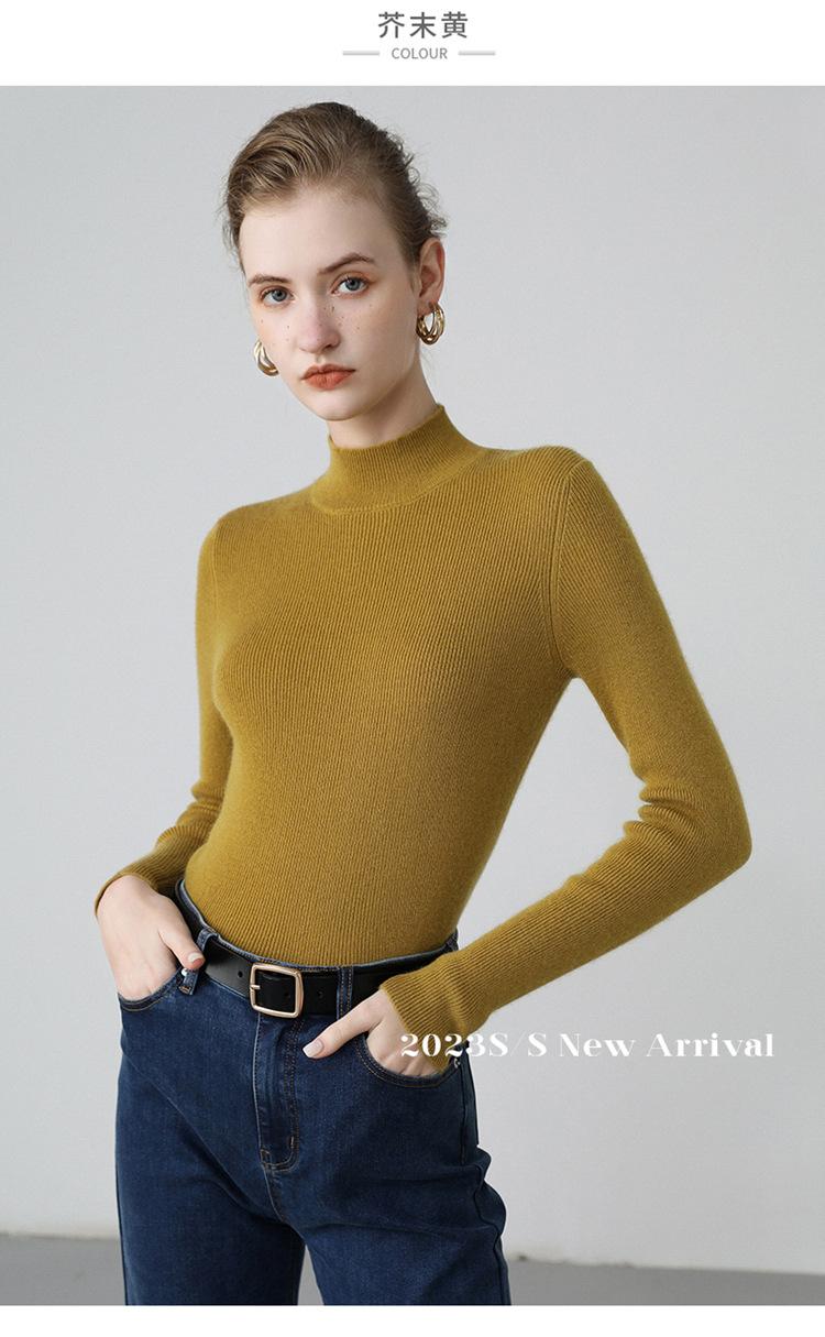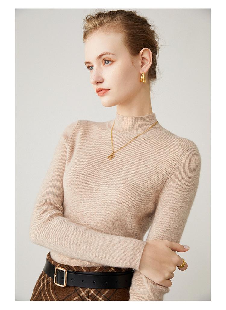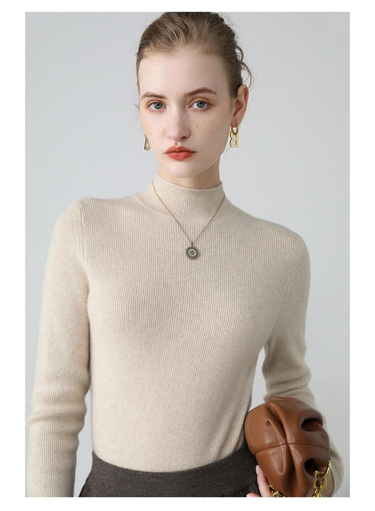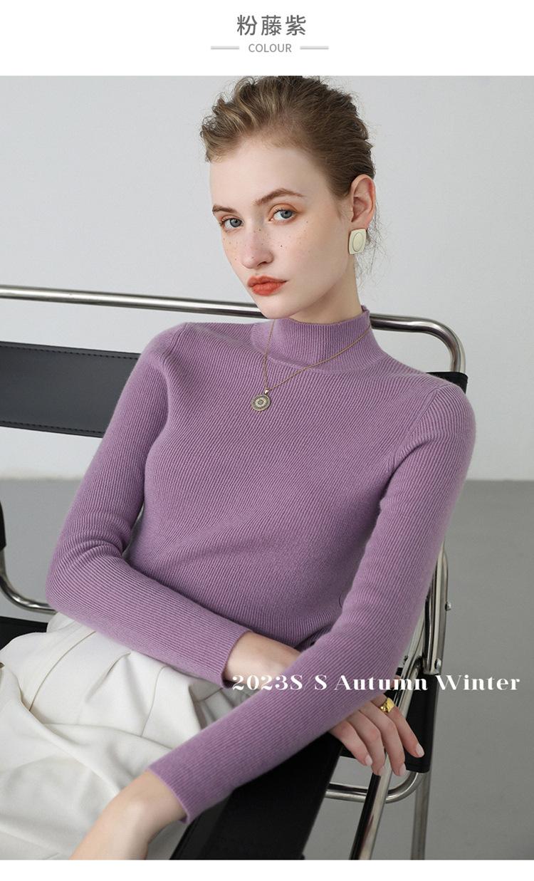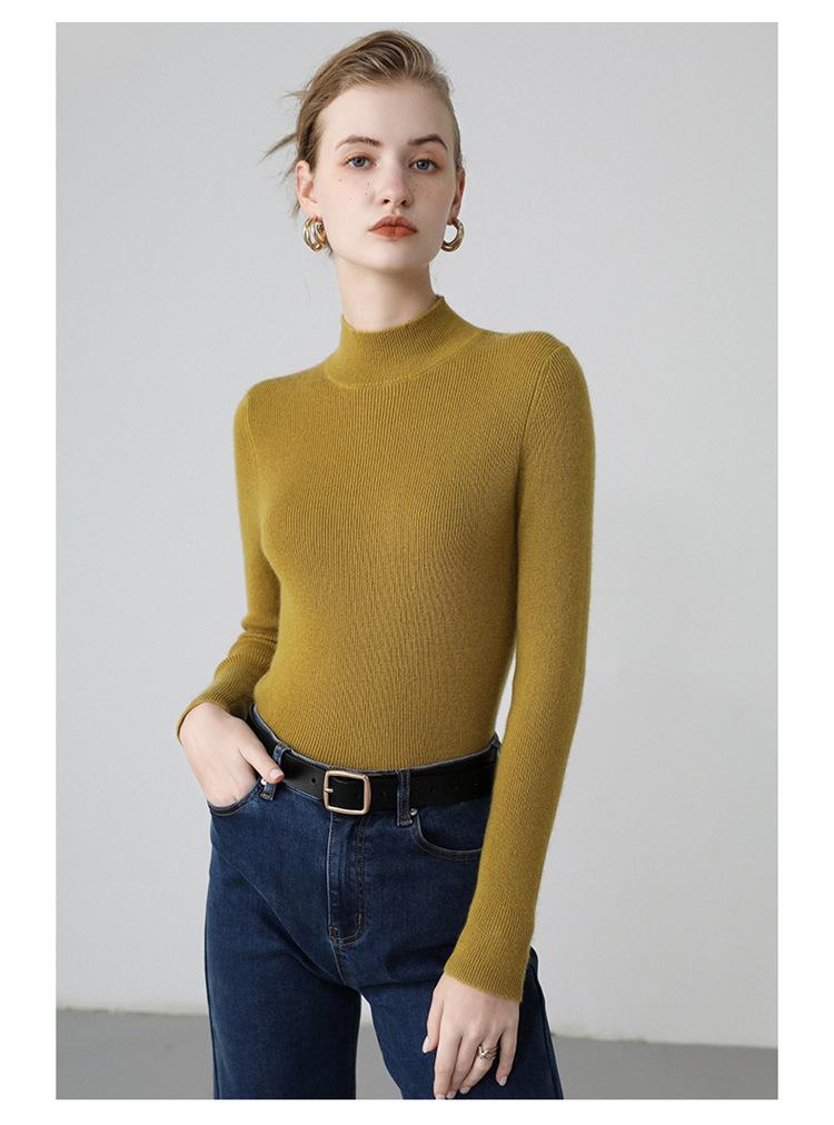 Suéter de Caxemira Feminino Gola Alta Manga Longa Pulôver Primavera e Outono Novo Ajuste Slim Lã Tricotada para Usar por Baixo Lã