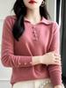 Moda Coringa Linda Lapela Top Feminino Outono 2024 Nova Manga Longa Lã Fina Suéter Base Camisa