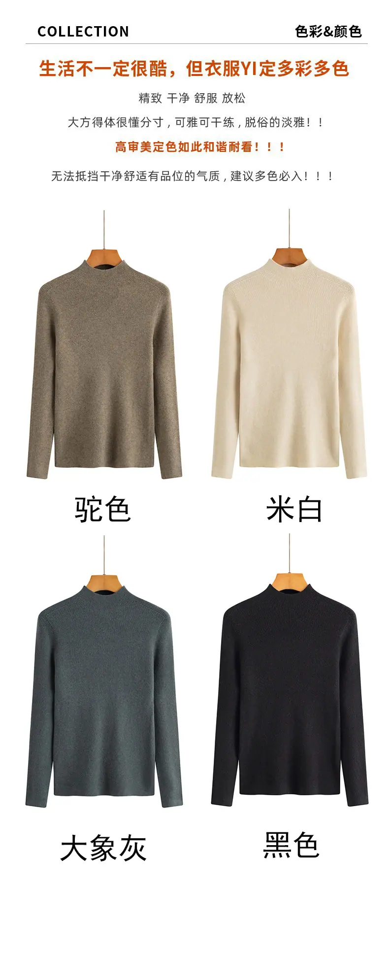 [Primeira Linha Pronta para Vestir] Suéter Tricotado de Lã Grossa, Slim de Manga Comprida Outono e Inverno Versátil e Estiloso Gola Alta Metade Gola Camiseta para Usar por Baixo