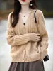 Outono e Inverno Novo Estilo Coreano Solto Preguiçoso Jaqueta Tricotada de Lã para Mulheres Cor Pura Casaco de Lã Decote V Estilo Curto Feminino