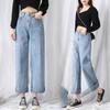Jeans Drapeados de Cintura Alta e Perna Larga para Mulheres, Estilo Fino de Verão 2024 Novo Solto Emagrecendo Americano Perna Reta Calças Comprimento Chão