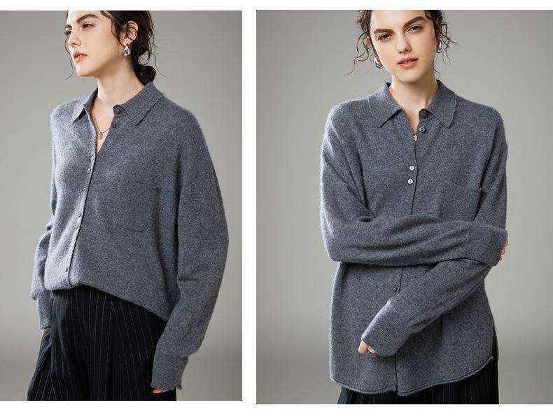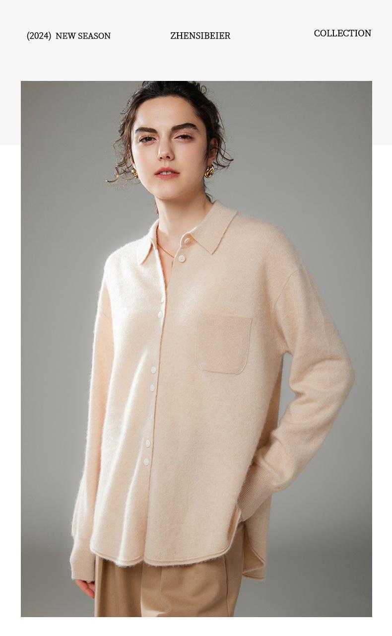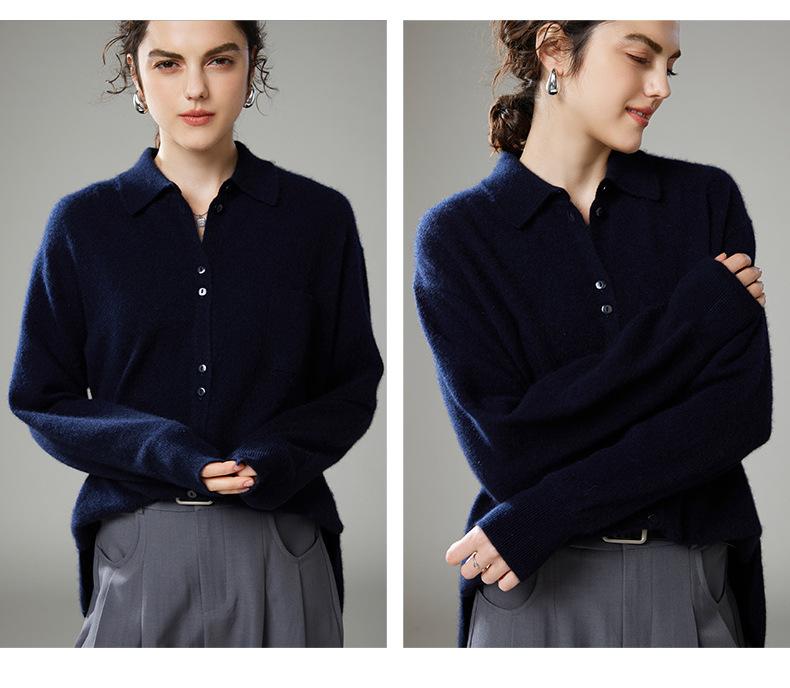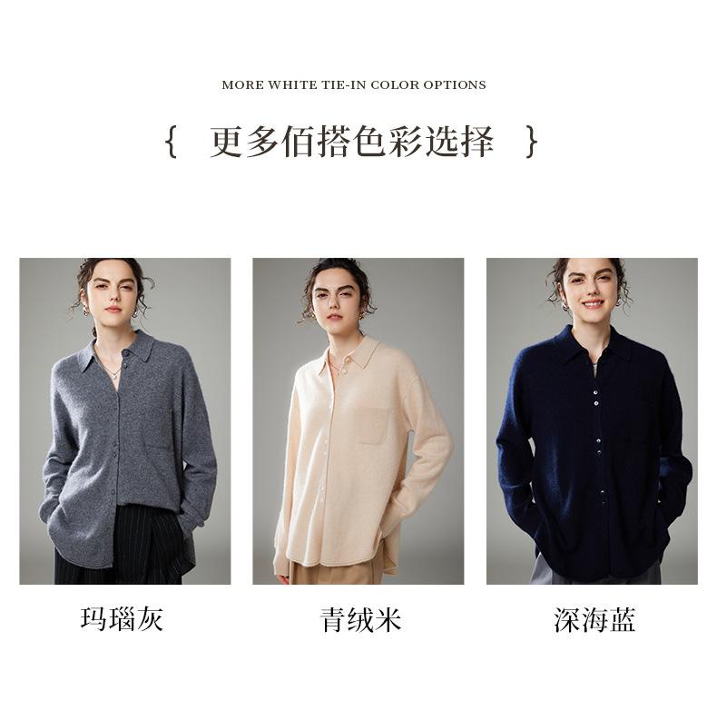 Polo Collar Cashmere Mulheres 24 Outono e Inverno Nova Camisa Malhas Elegante Top Interno de Lã Base Feminina Suéter