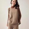Europeu 2023 Outono e Inverno Novo Suéter Colete Decote em V Feminino Manga Batwing Cor Sólida All-match Sem Mangas Colete Solto Na Moda