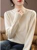 Suéter feminino de manga comprida de gola alta meia outono e inverno 2023 Novo desgaste único solto com fundo frisado top desgaste interno