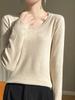 Top de Camisa Base Versátil Elegante 2024 Início do Outono Novo Decote Redondo Camisa de Malha Manga Longa Feminina Cor Sólida Solta Simples