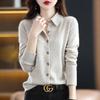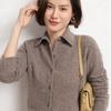 Outono Novo Camisa Tricotada Feminina com Gola Polo Suéter Feminino Solto de Manga Comprida Cardigã de Lã Jaqueta com Lapela