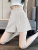 Shorts de terno de cintura alta de verão para mulheres A- linha de calças de emagrecimento preto casual fino de seda de gelo drapejar shorts de perna larga