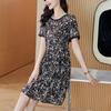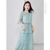 Rongtai Floral Design Costas Lace-up Única Camada Mulberry Seda Silk vestido Mulheres Emendado Grande Swing Saia Solta