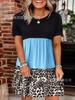 Amazon cross-border Europa e Estados Unidos nova estampa de leopardo costura camiseta solto vestido casual