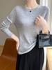 2025 Primavera e Outono Novos Tops de Lã Femininos de Gola Redonda Camisetas Slim de Base Moda e Estilo Ocidental Suéteres e Suéteres Internos